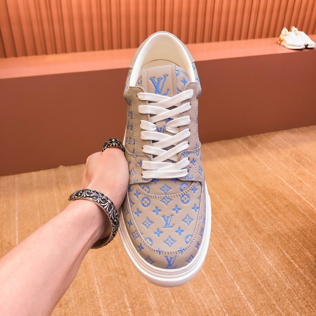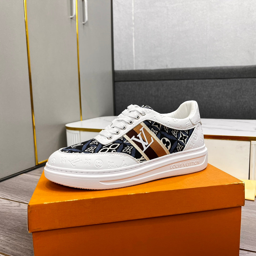LV TRAINER SNEAKER WHITE MIX NAVY BLUE CALFSKIN AND BREATHABLE FABRIC