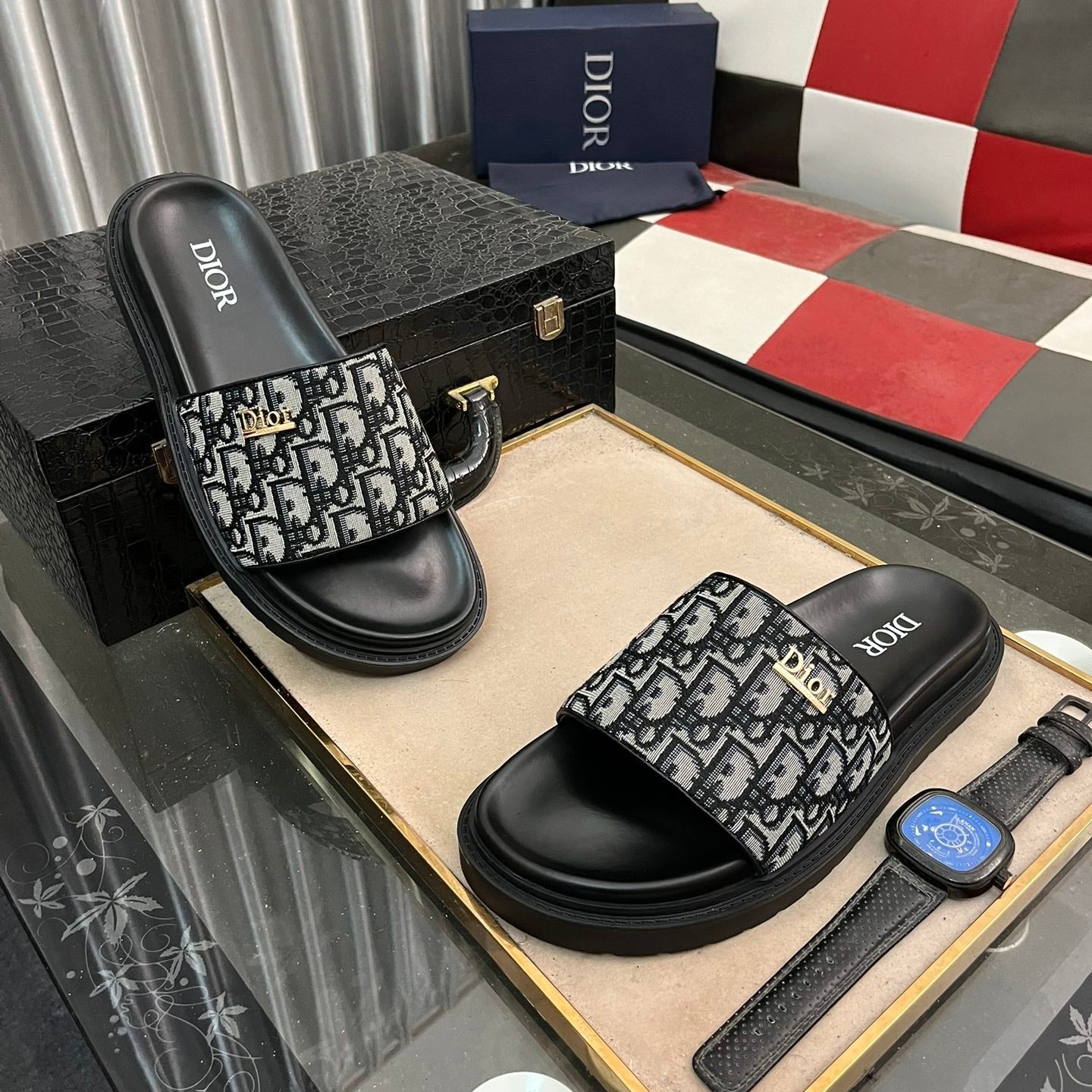 CD SLIDE LETTER SLIPPER BLACK CALFSKIN