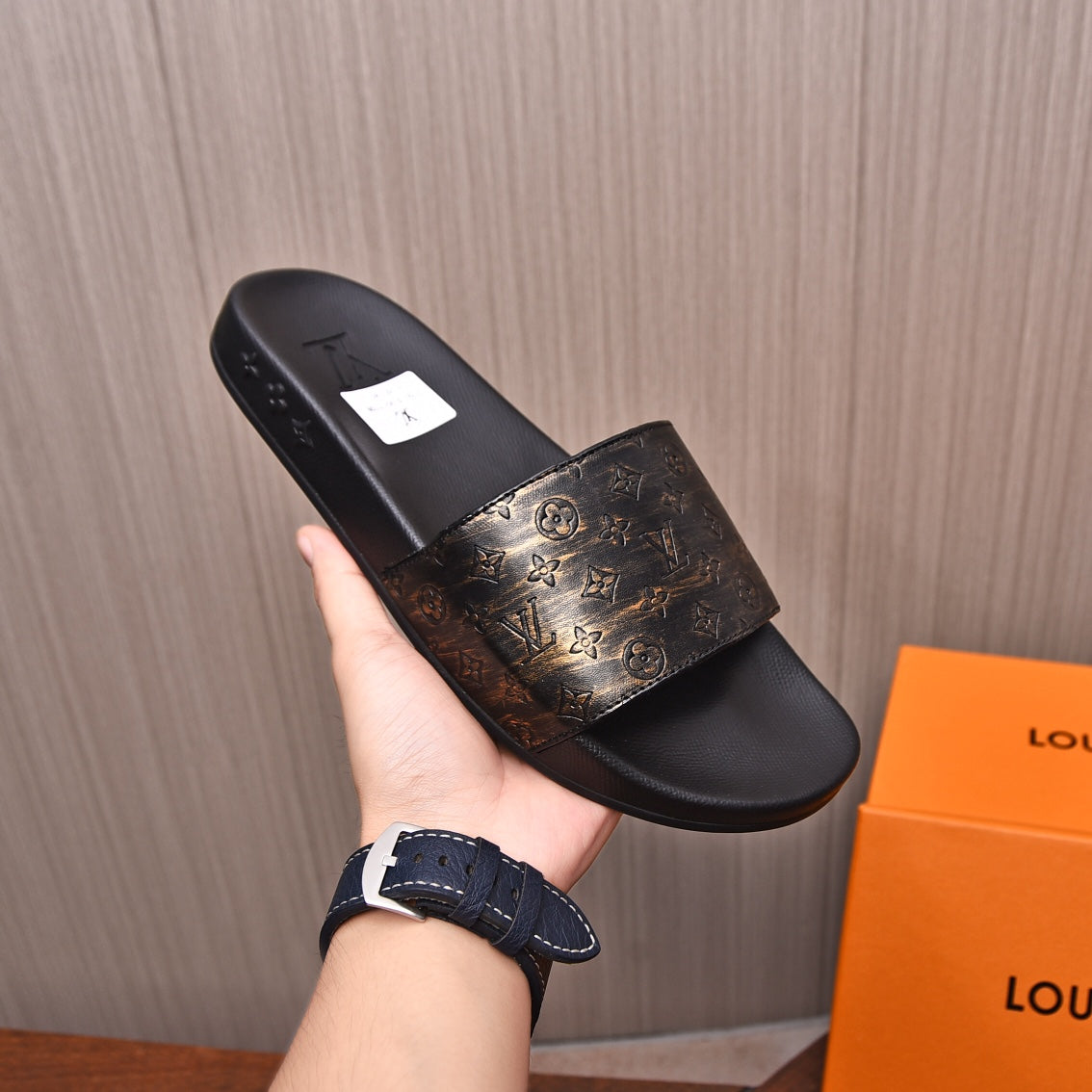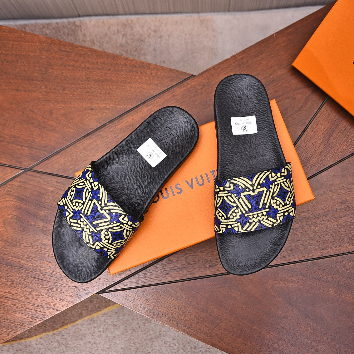 LV THONG SLIPPER IN NAVY BLUE MONOGRAM CALFSKIN