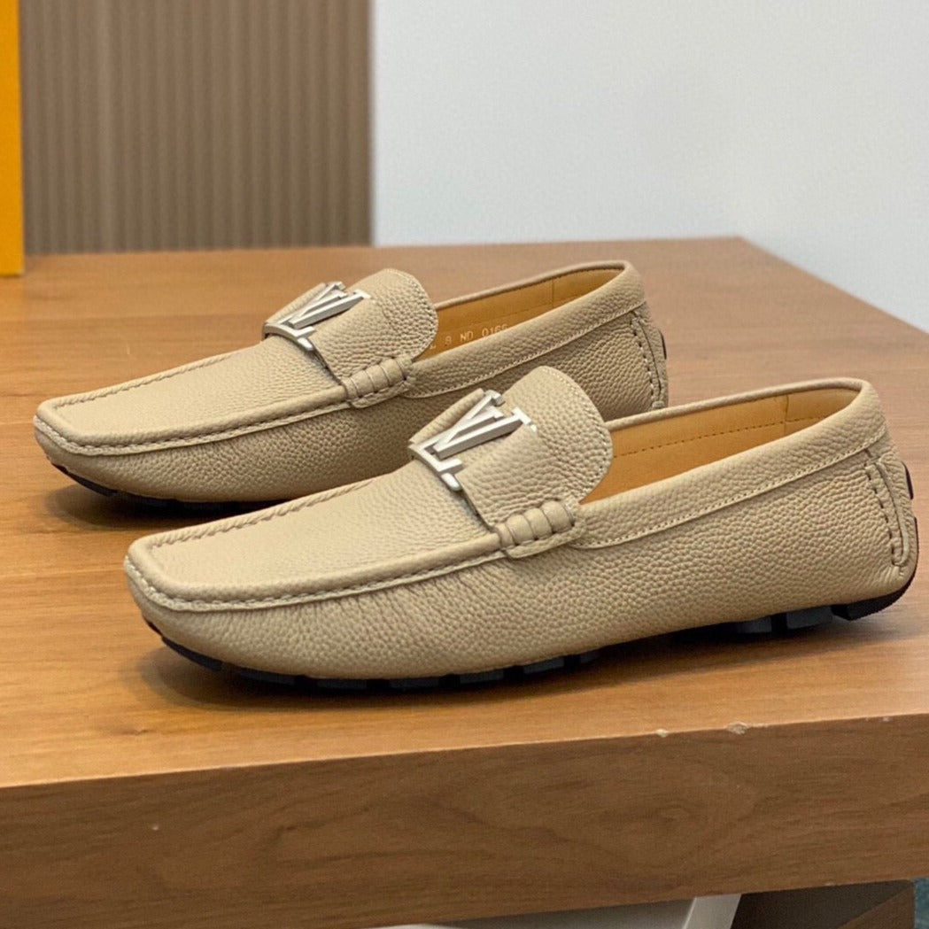 LV LOAFER IN DARK CREAM WRINKLE CALFSKIN WITH SILVER LOGO
