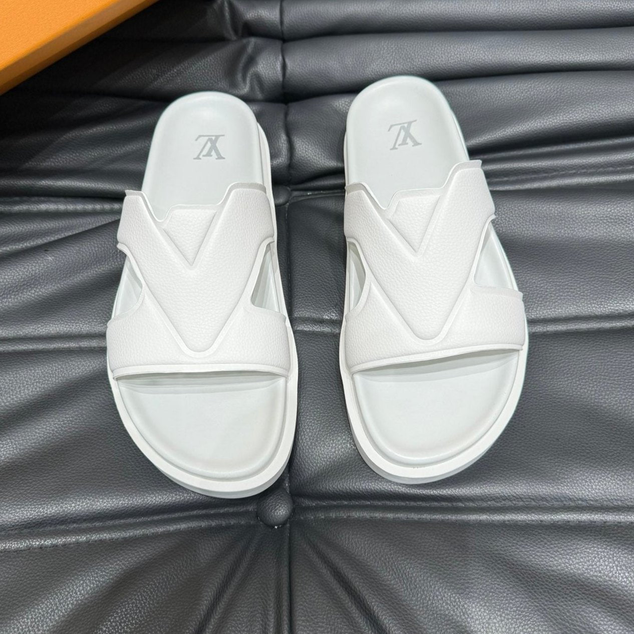 LV THONG SLIPPER IN WHITE MONOGRAM CALFSKIN