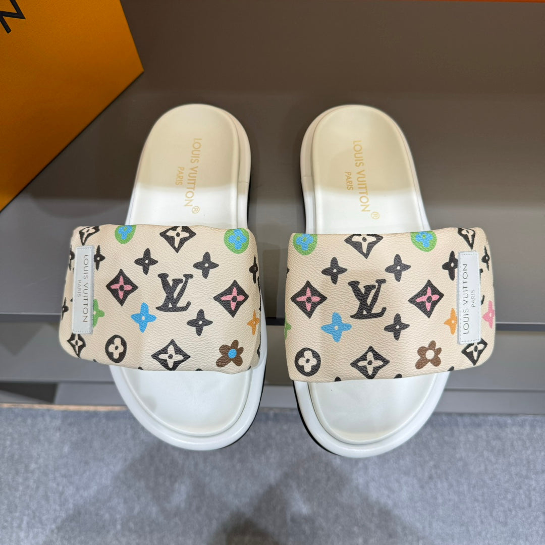 LV VELCRO SLIPPERS IN BEIGE CREAM MONOGRAM CALFSKIN