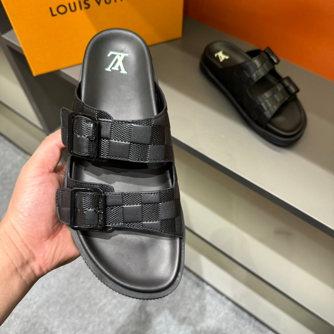 LV DAD SANDAL BLACK DAMIER CALFSKIN