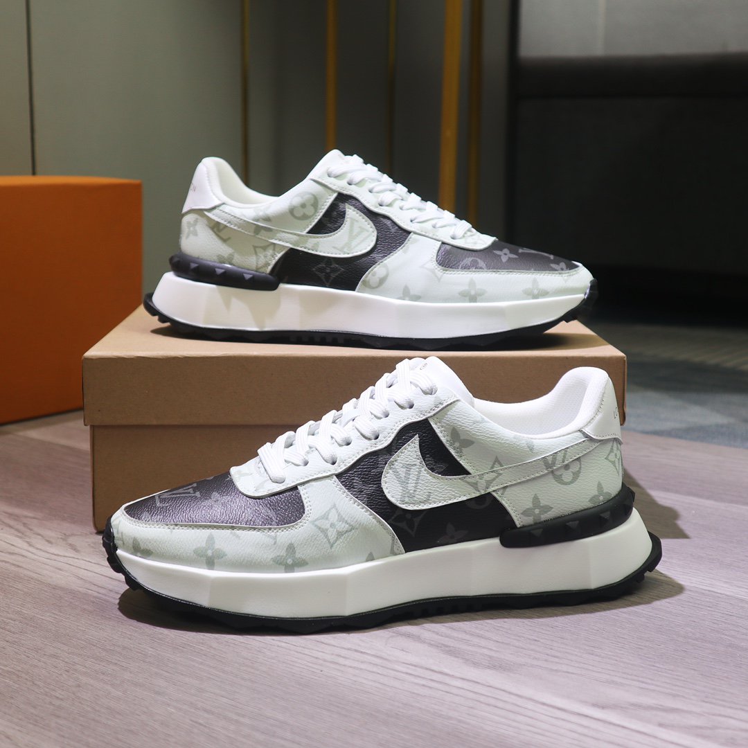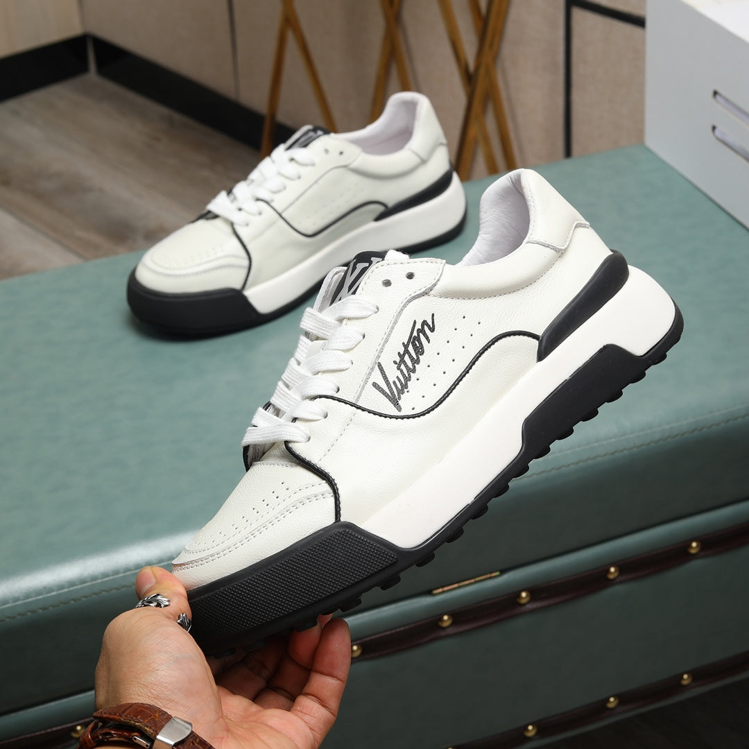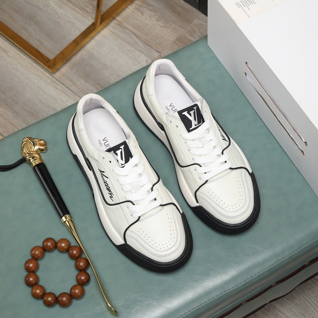LV HIGH-END CLASSIC WHITE BLACK AND WHITE SUEDE MEN'S SHOES
