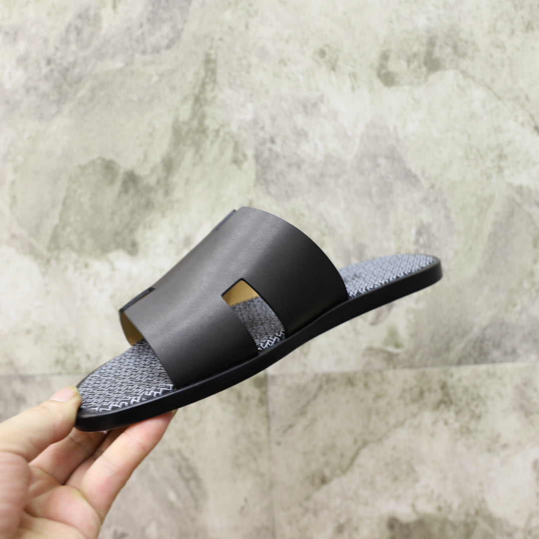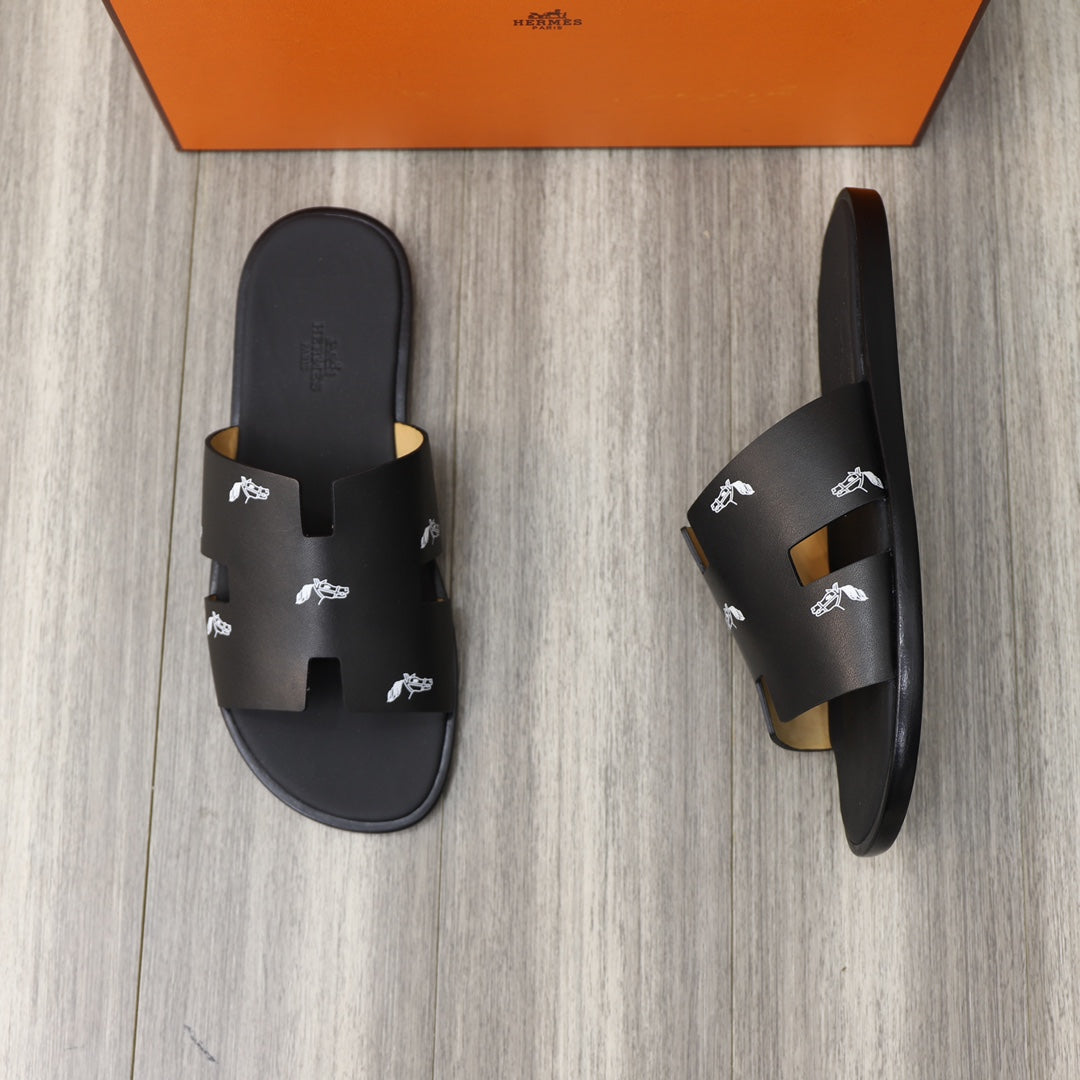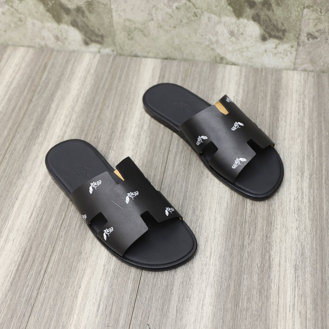 HM IZMIR SANDAL BLACK WITH WHITE MOTIF CALFSKIN