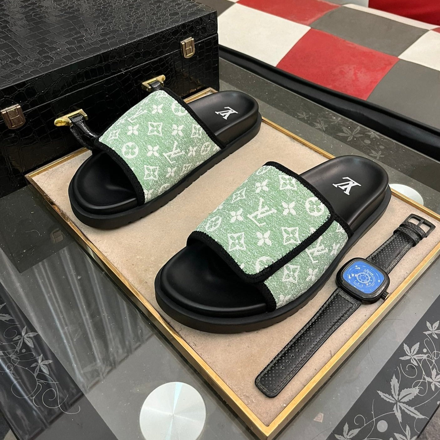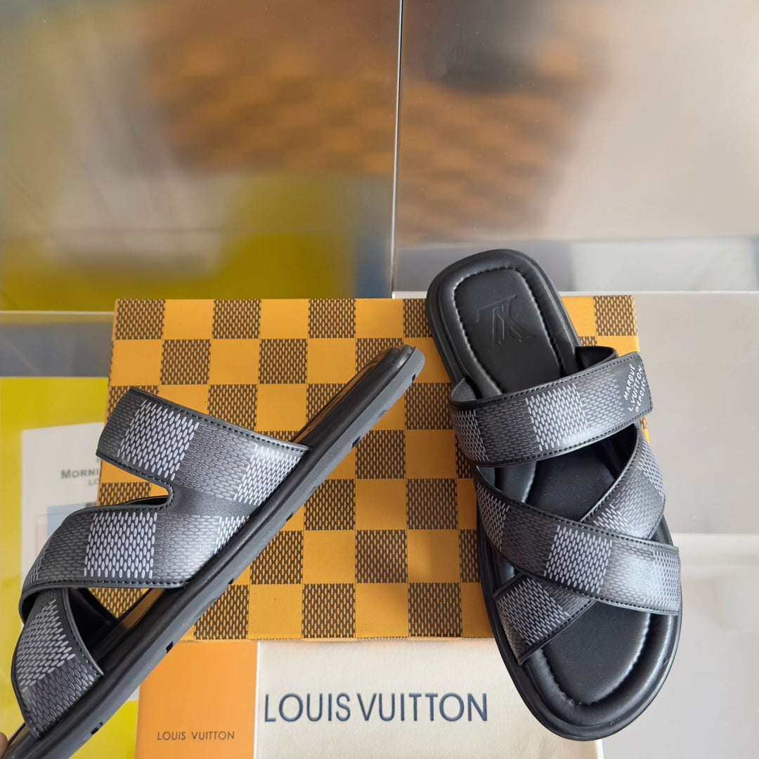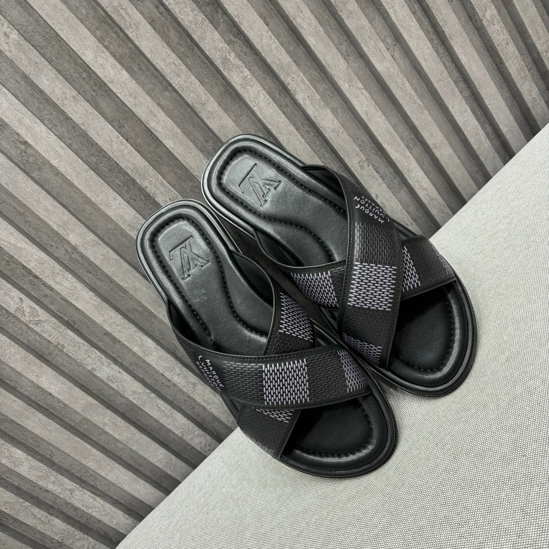LV VENICE MULE SLIPPERS BLACK DAMIER