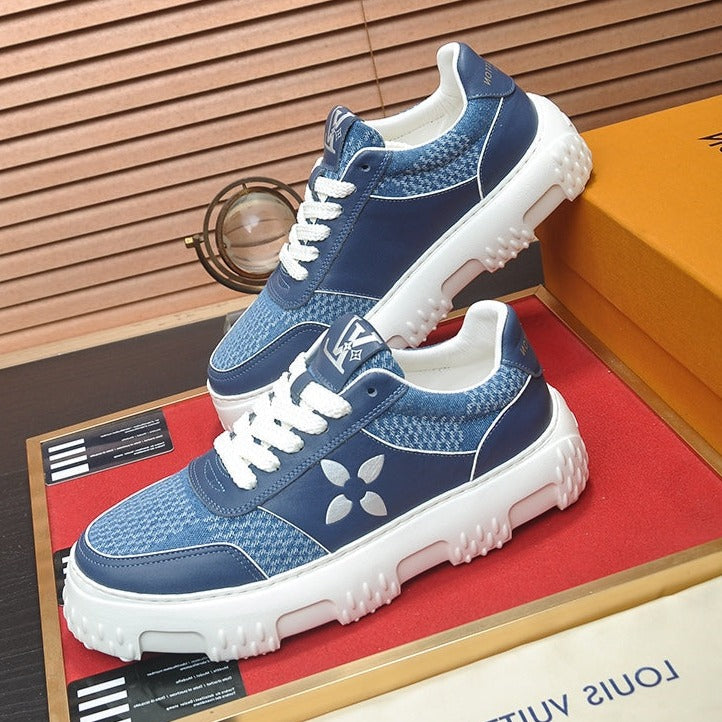 LV TRAINER BLUE COBALT CALFSKIN AND DENIM
