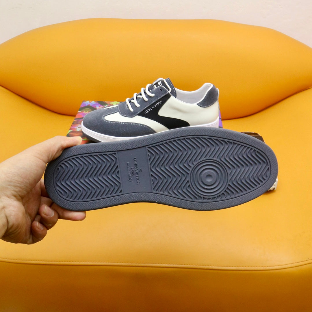LV TRAINERS IN GREY SUEDE AND WHITE CALFSKIN