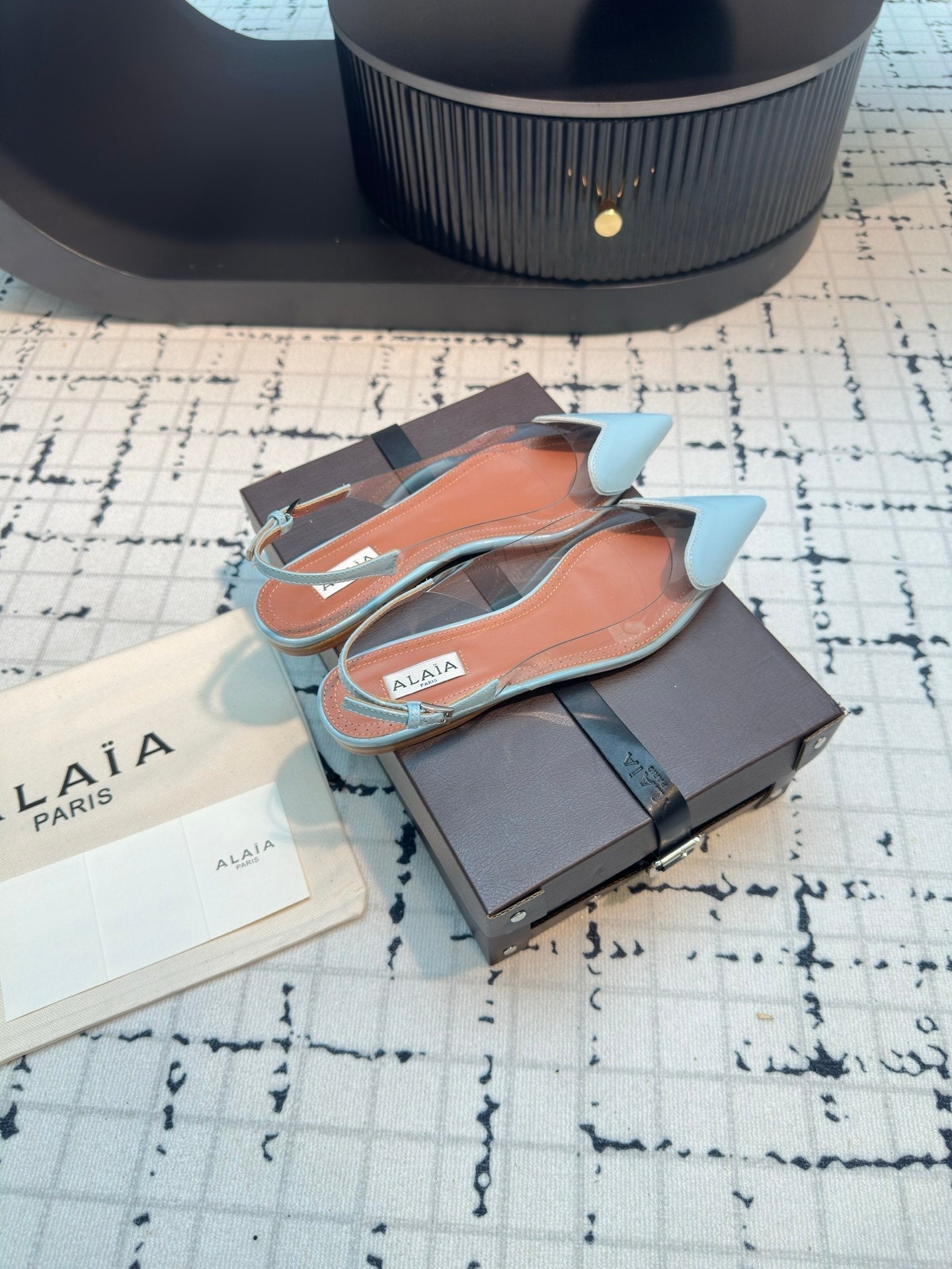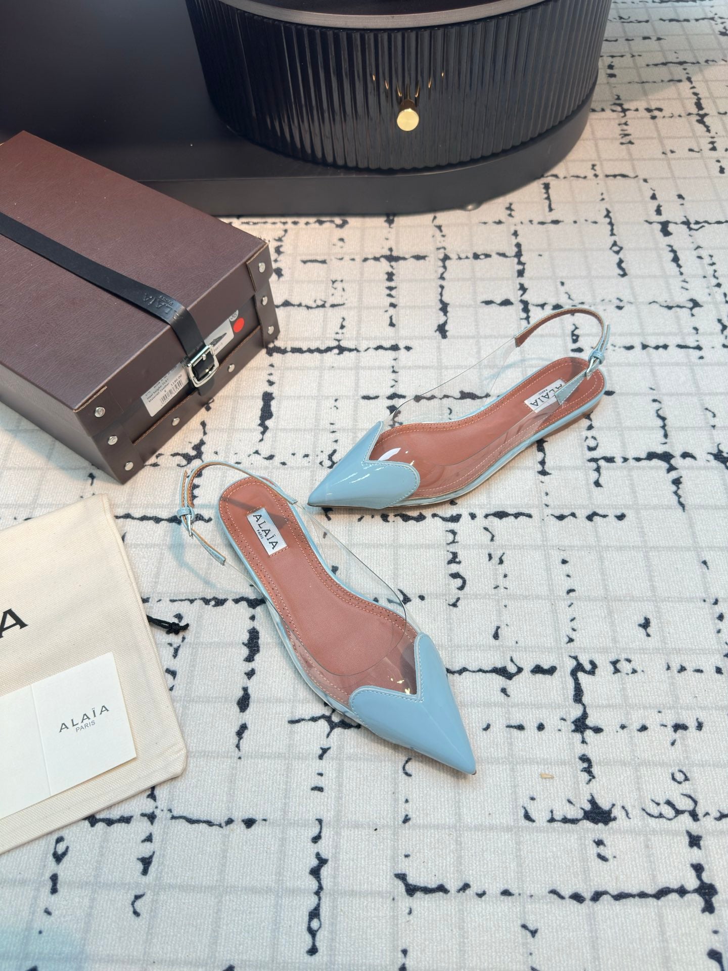 Alaia Heart Flat Slingbacks Blue Sheepskin 800938