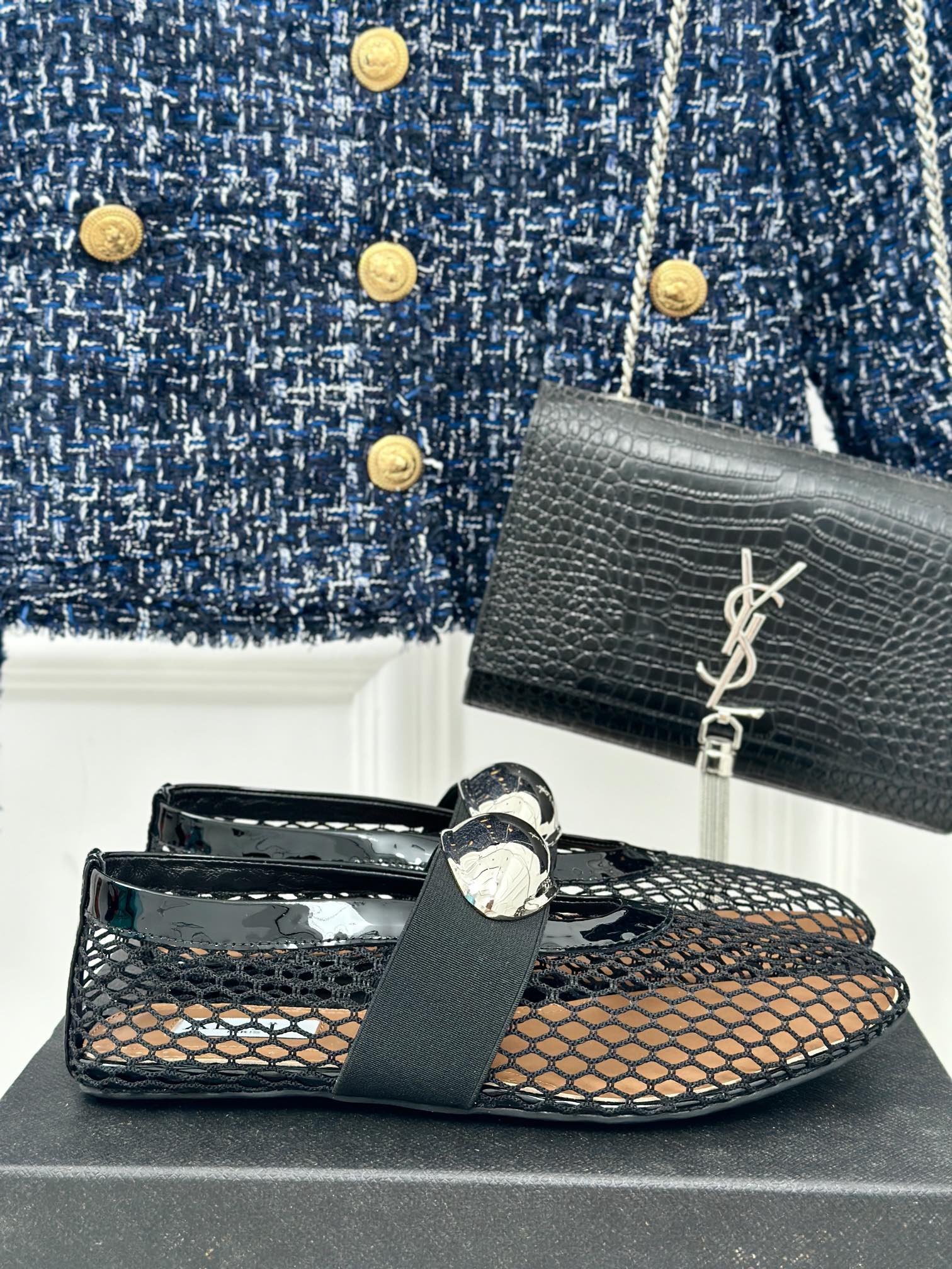 ALAIA MARY JANE SHOES IN BLACK MESH WITH SILVER HARDWARE