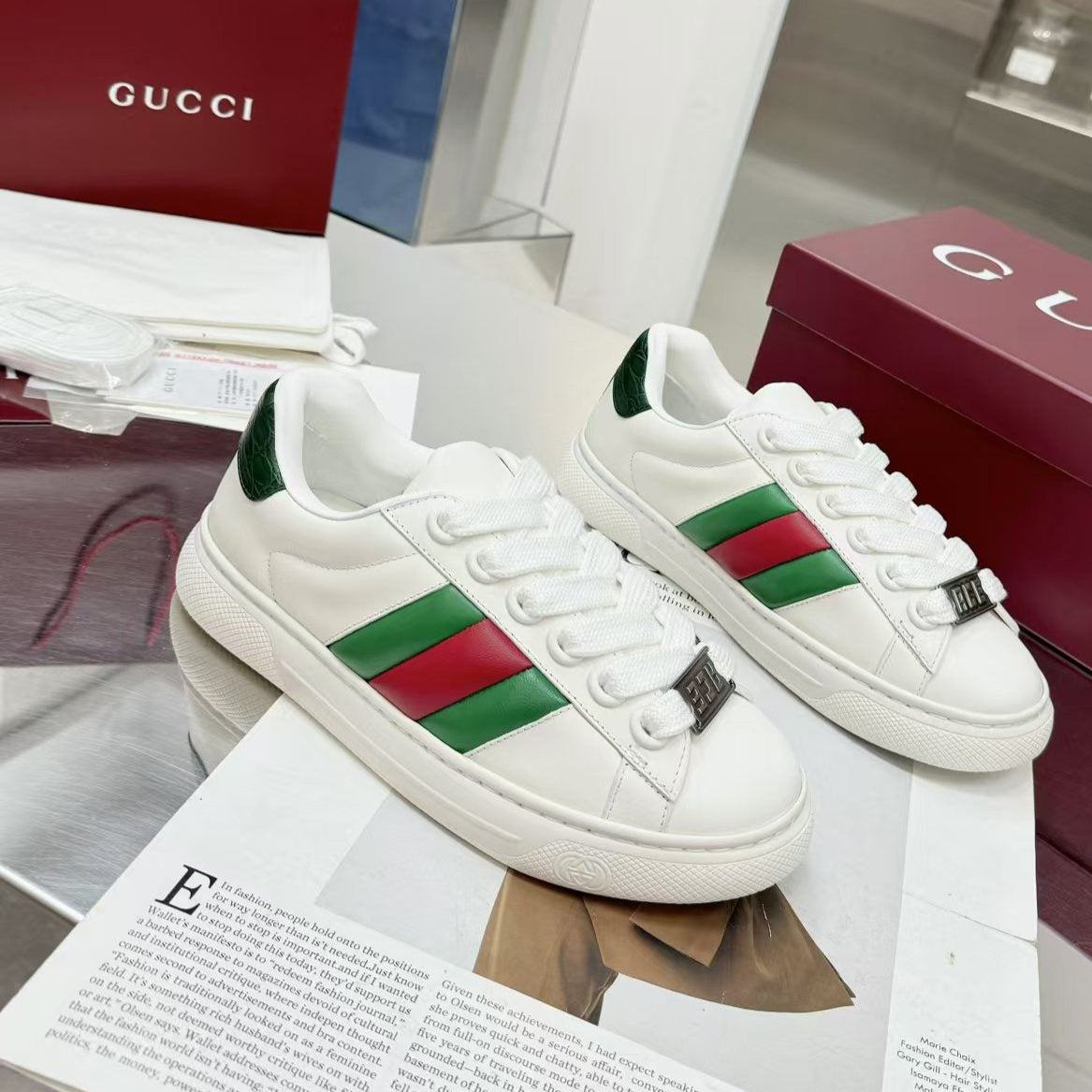GG Men's ACE Sneaker White Cowhide 574741