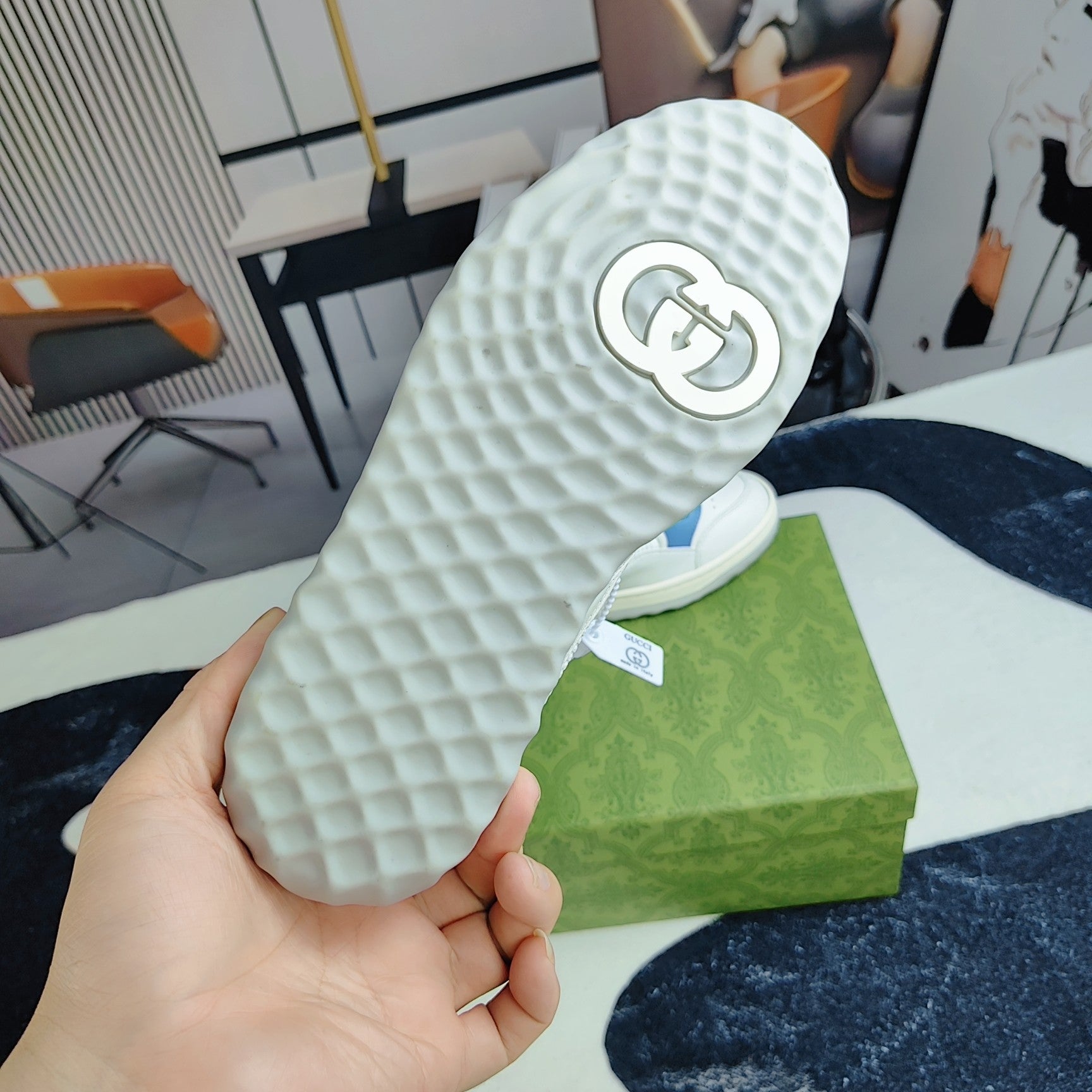 GG Men's MAC80 Sneaker White Blue Cowhide 523620