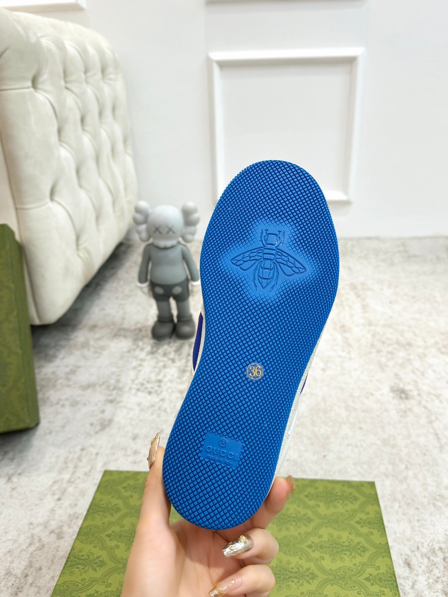 GG Men's Screener Sneaker White Blue Sheepskin 574737
