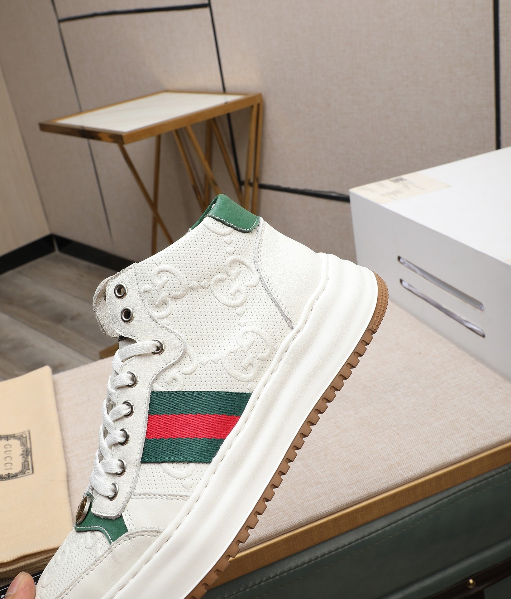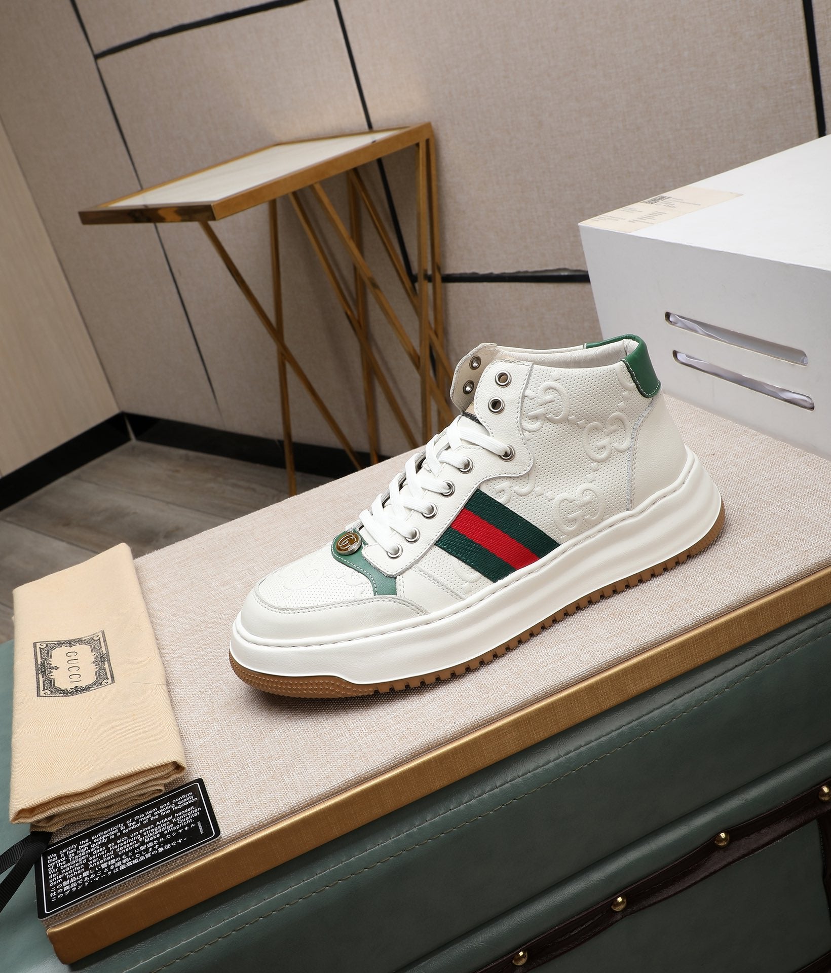 GG Men's Screener Sneaker White Cowhide 440159