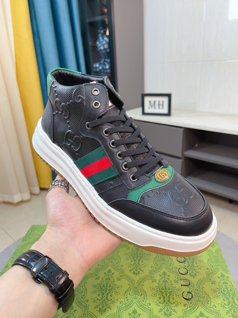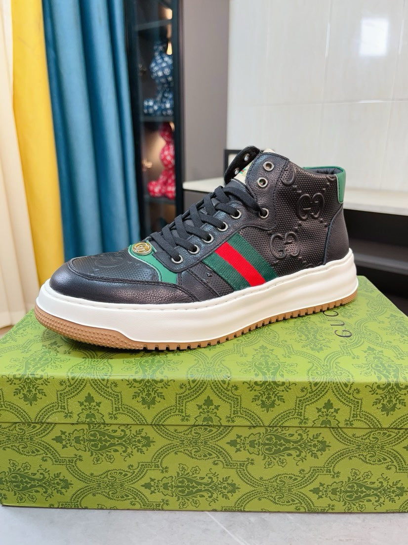 GG Men's Sneaker Black Embossed Cowhide 471066