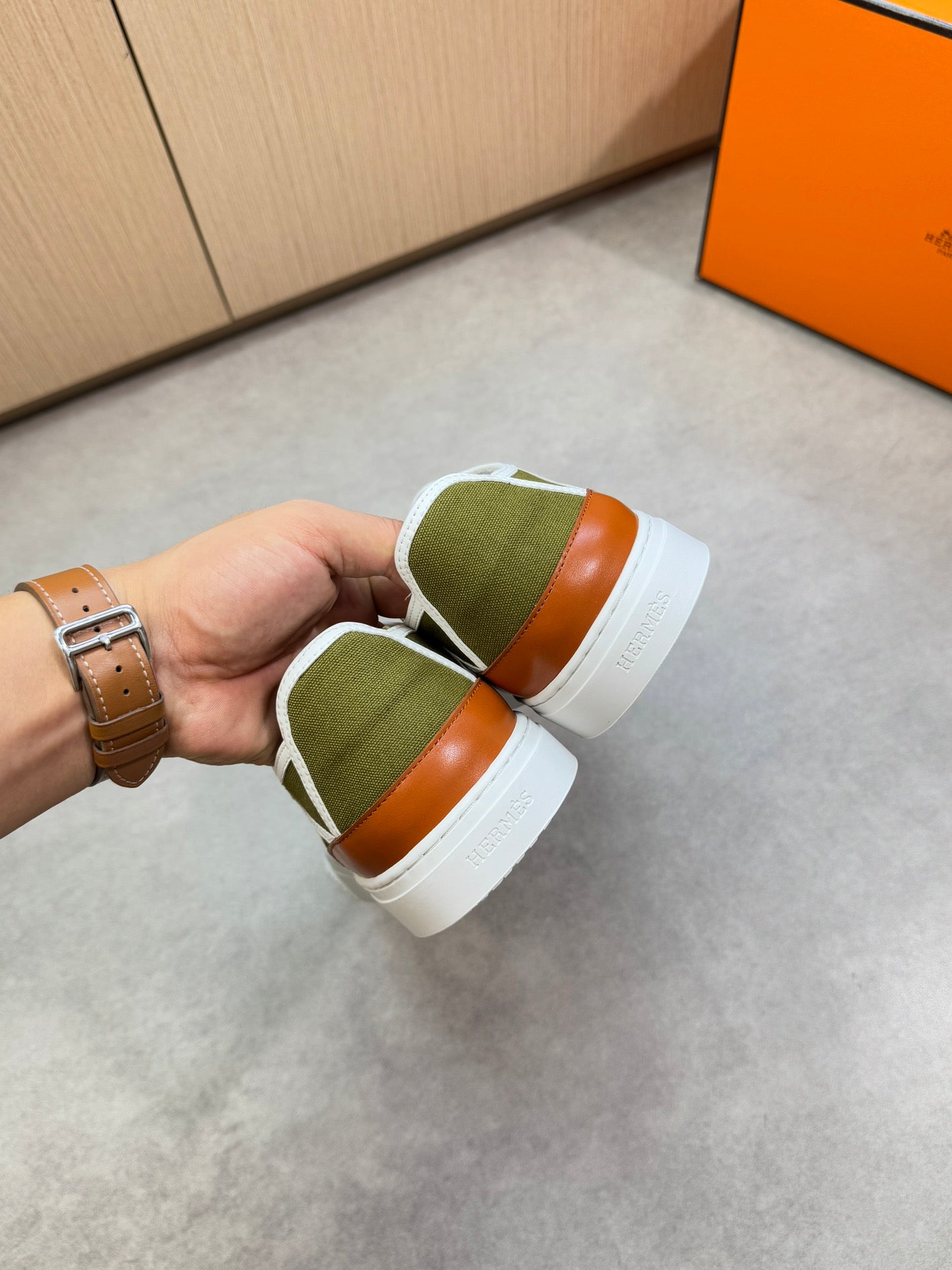 HM Men's Get Sneaker Green Denim Calfskin 696208