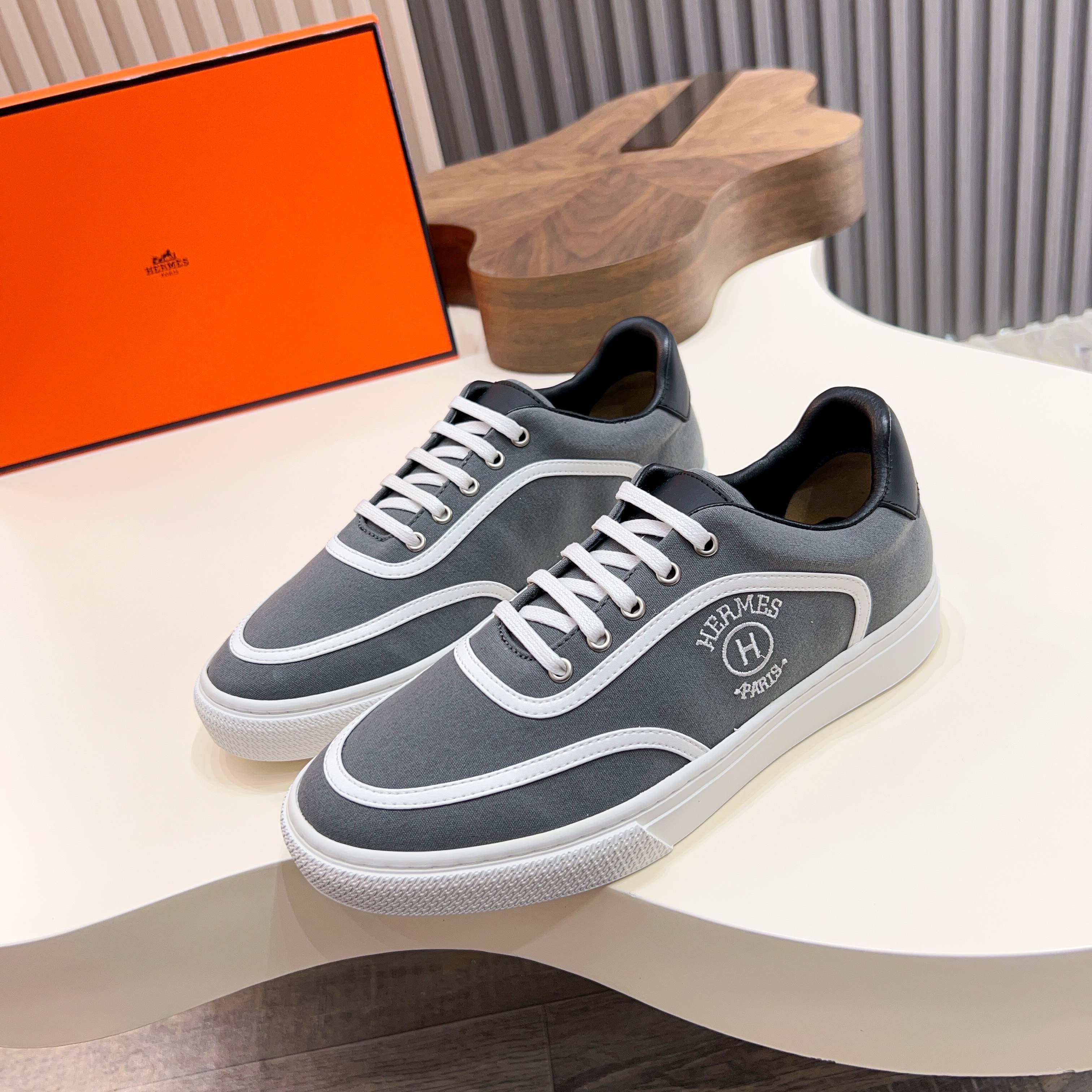 HM Men's Get Sneaker Grey Cowhide Canvas 723509