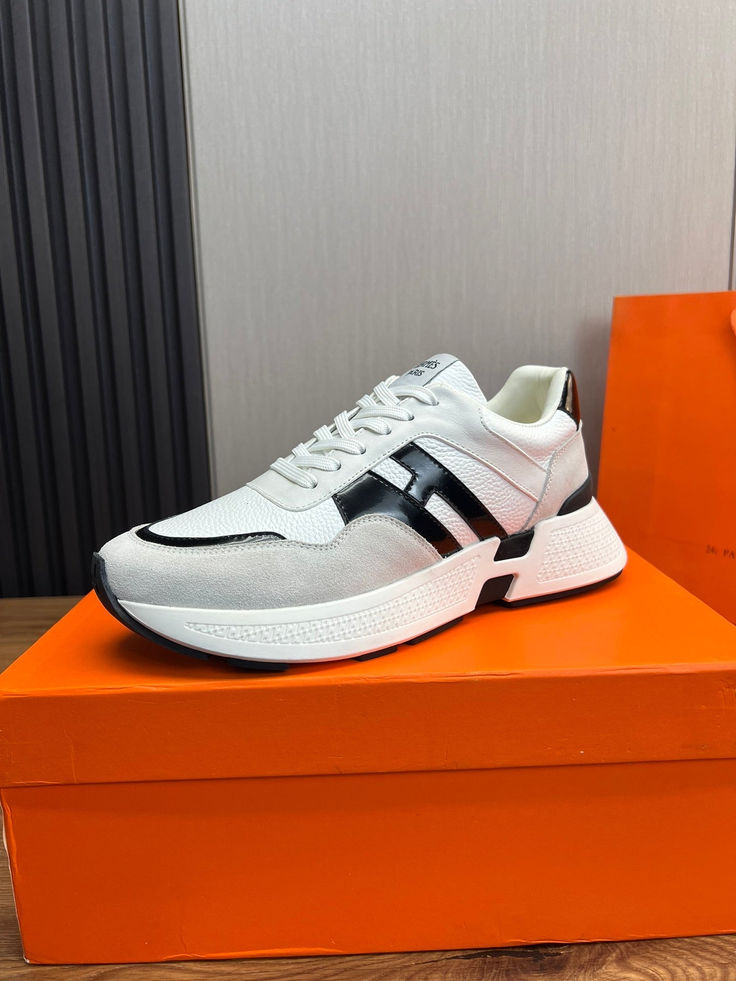 HM Men's Sneaker White Black Cowhide Suede 936373
