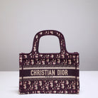 cd mini book tote 23cm burgundy beige embroidery canvas