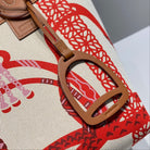 HM Steeple 28 Bag Brown Calfskin White Red Canvas