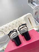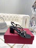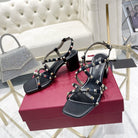 Rockstud 6cm Square Toe Black Leather Sandals