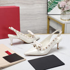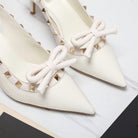 Rockstud Bow Slingback White Calfskin With Matching Studs