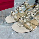ROCKSTUD SANDAL WITH STRAPS IN WHITE CALFSKIN