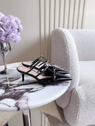 Rockstud Wispy Calfskin Mule 65mm Shiny Black