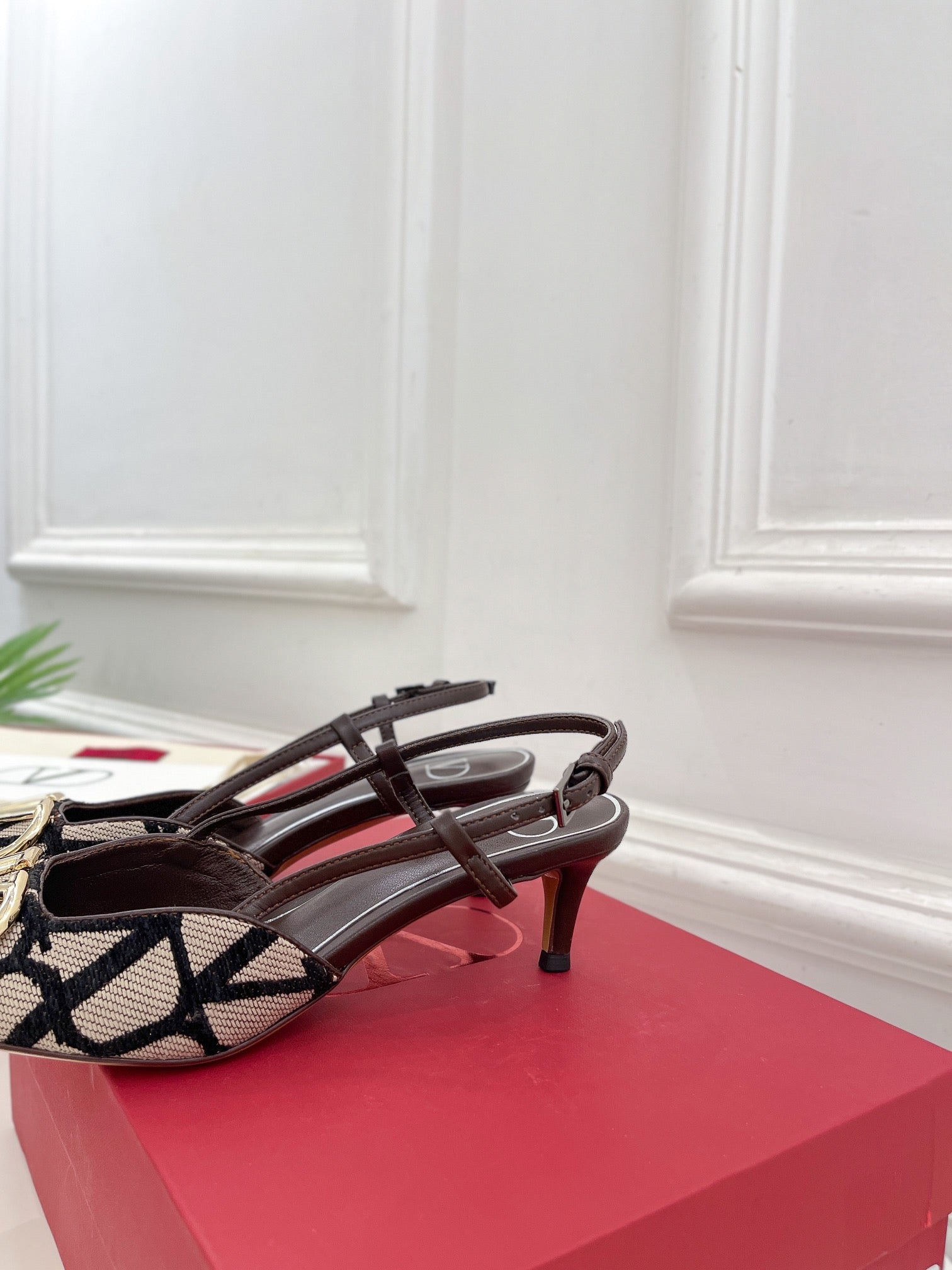 Vlogo Signature Slingback Pump Chocolate Toile Iconographe Raffia