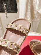 VT Rockstud Sandals Pink Nude Espadrilles Cowhide 328129