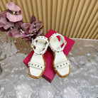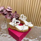 Rockstud Flatform Sandal 75mm In White Calfskin And Raffia 102854