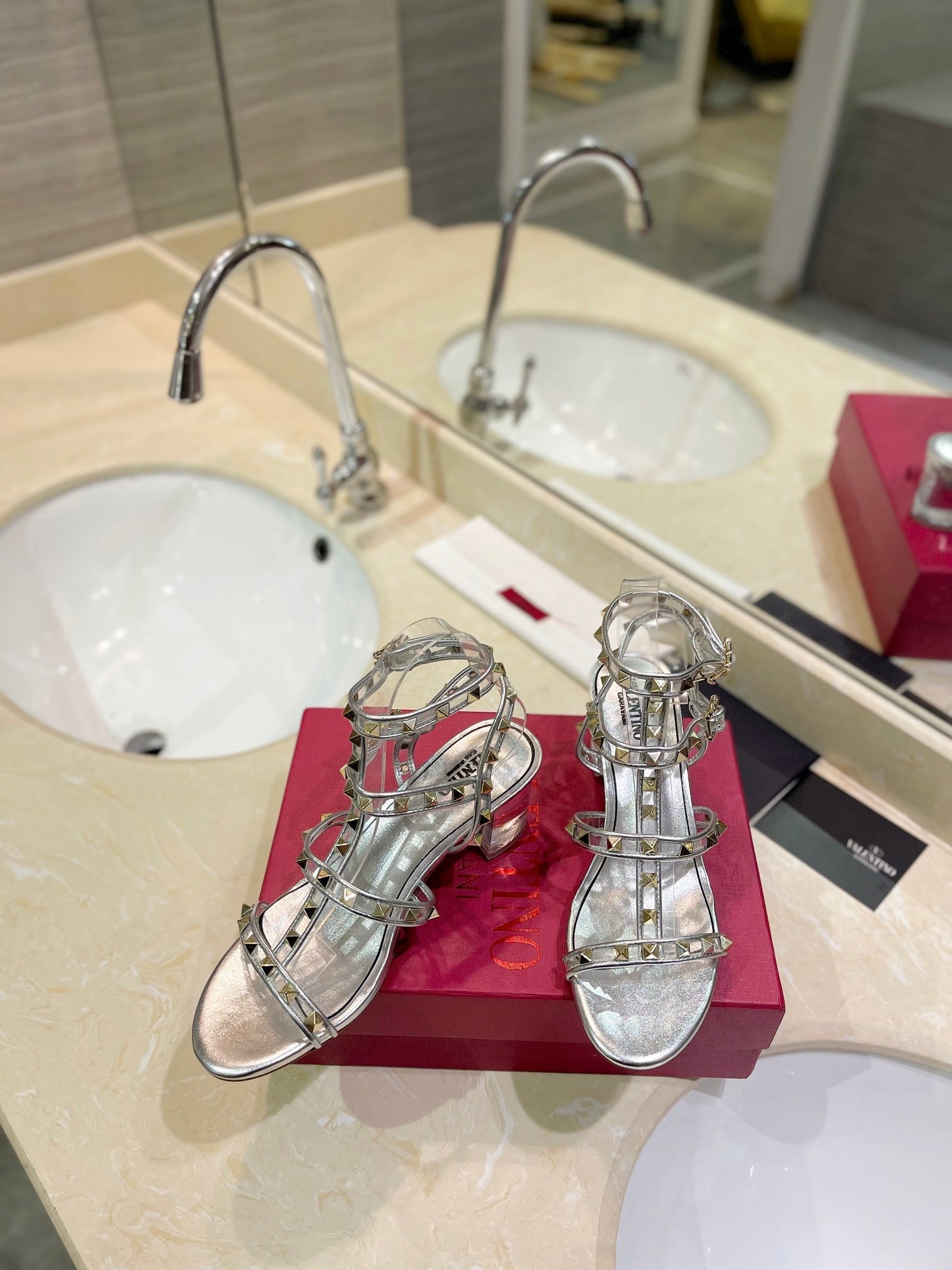 ROCKSTUD SANDAL WITH STRAP IN SILVER CALFSKIN 60 MM
