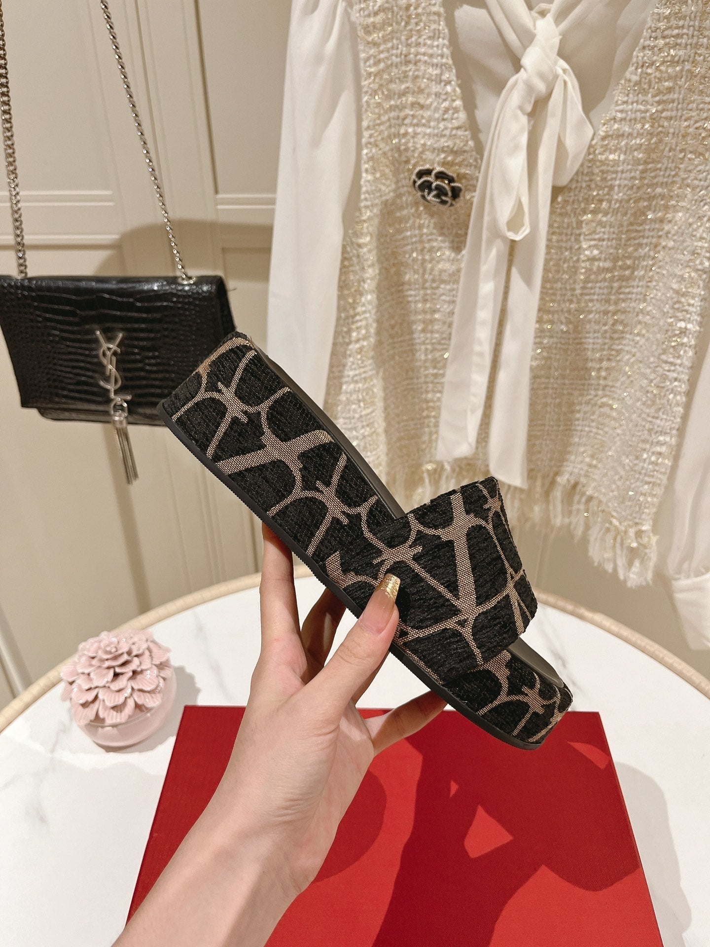 Toile Iconographe Slide Sandal 65mm Black Beige