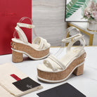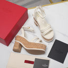 Valentino Garavani VLogo Summerblocks Wedge Sandals 115mm White Mix Brown Cowhide And Nylon Rope 821111