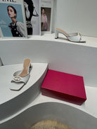 VT Mid Heel Mule Sandal White Sheepskin 292758
