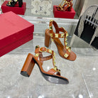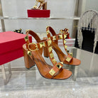 VT Rockstud Sandals Brown Gold Cowhide 369450