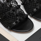 WOMEN'S BLACK ROCKSTUD BLACK MESH SLIDER SANDAL WITH MATCHING STUDS 65 MM