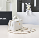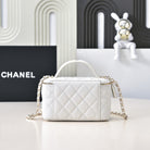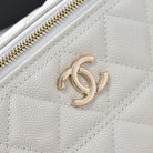 CC 25C Vanity Top Handle 17cm White Grained Calfskin Light Gold Hardware