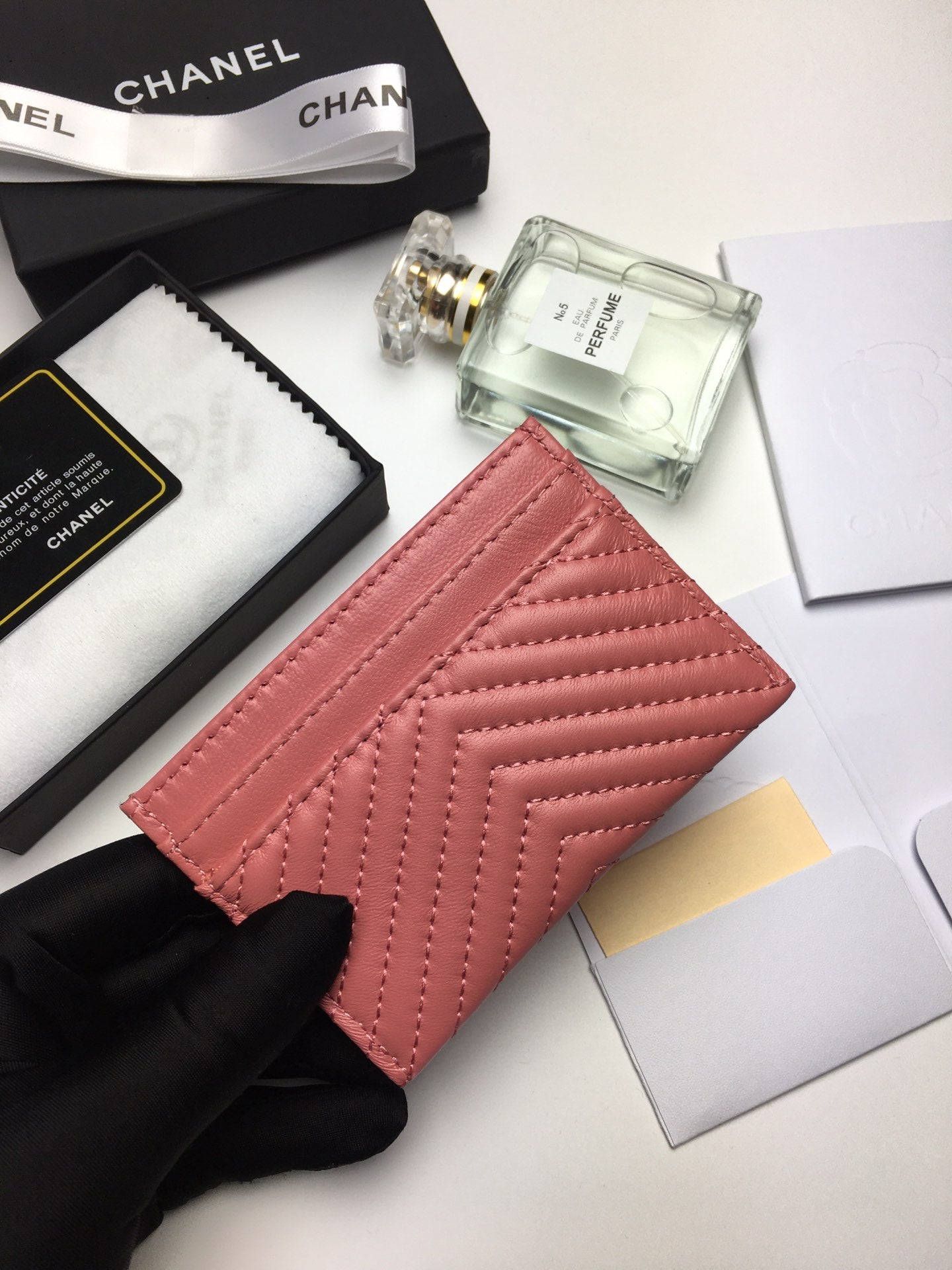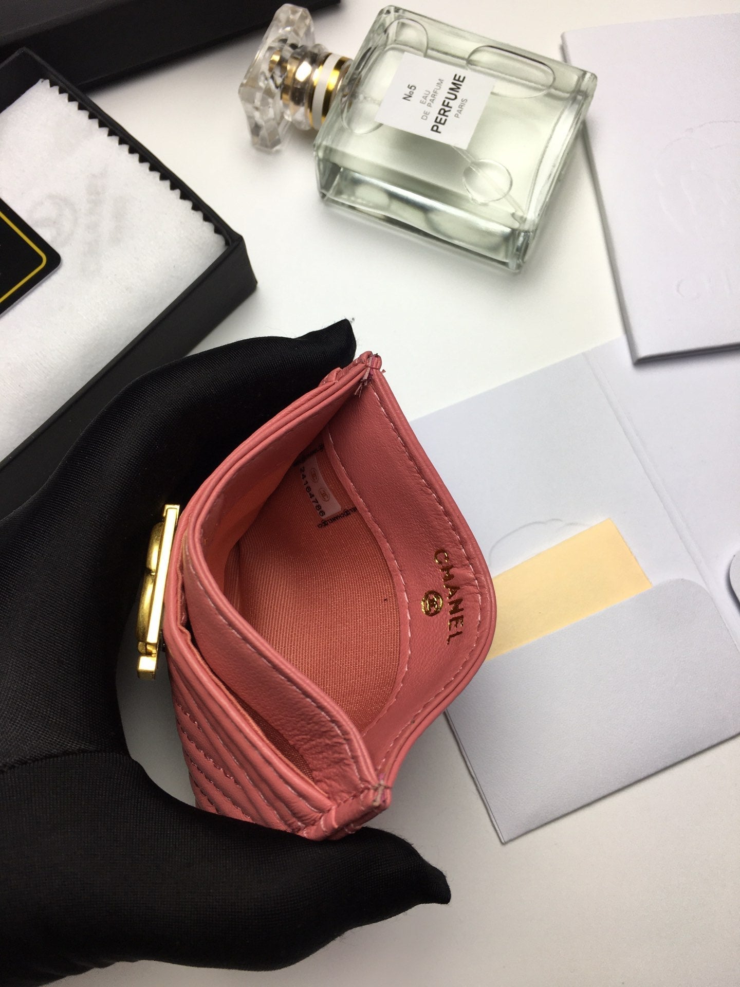 CC LINE CARD HOLDER 11.2 CORAL CALFSKIN GOLD ICON