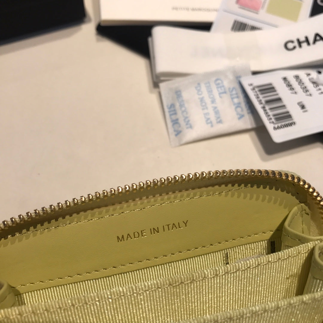 CC ZIPPED CAVIAR PURSE 11 LIGHT YELLOW CALFSKIN GOLD ICON