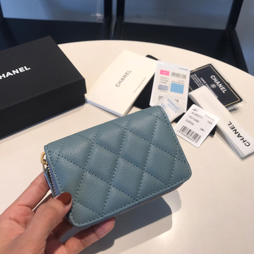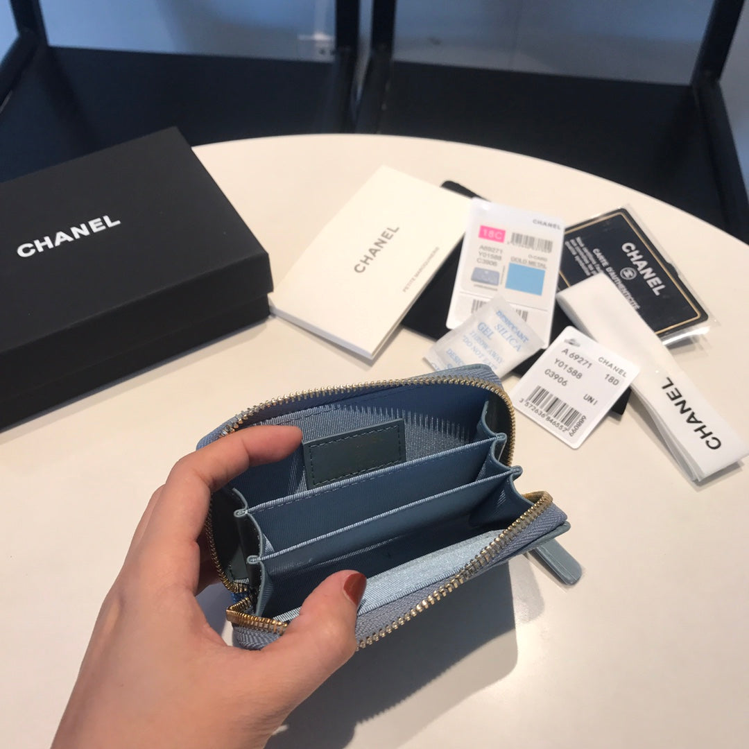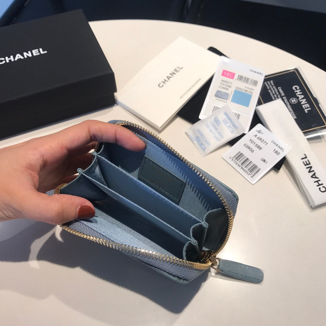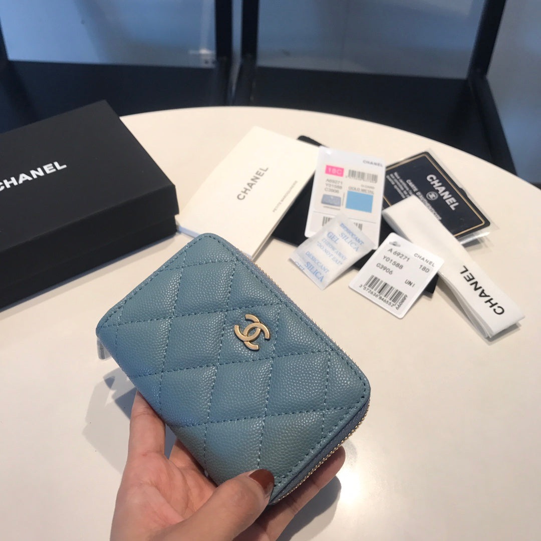 CC ZIPPED COIN BASIC PURSE 11 SAPPHIRE CALFSKIN GOLD ICON