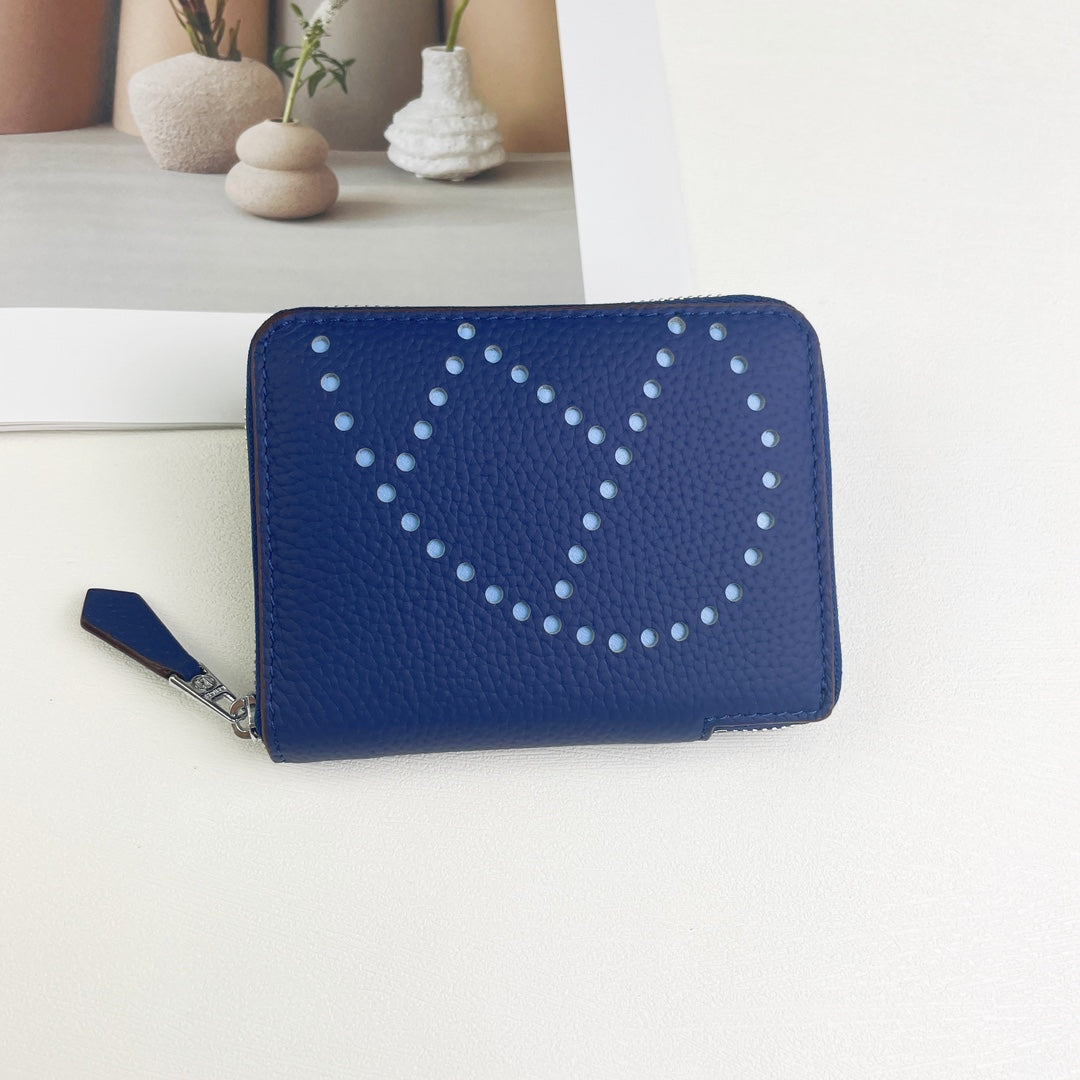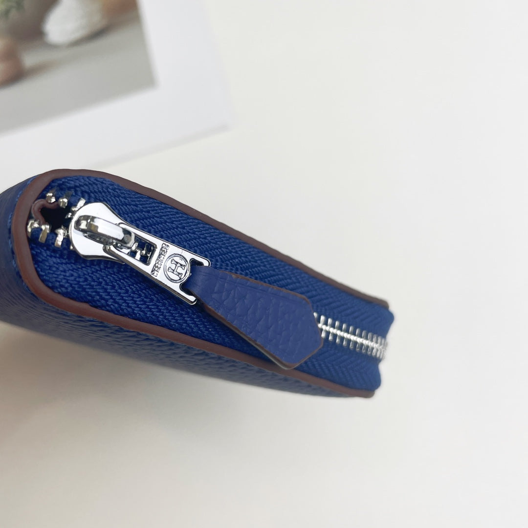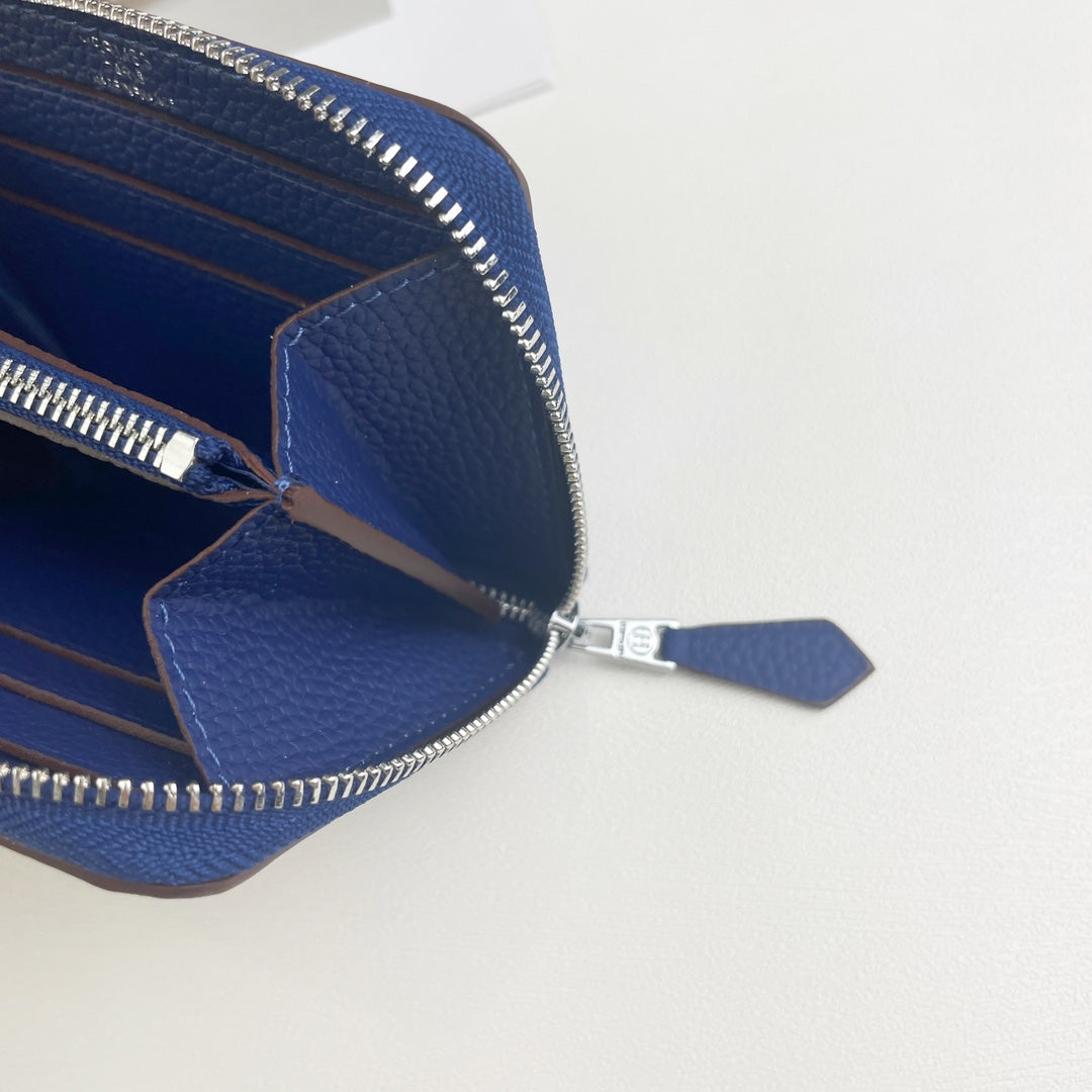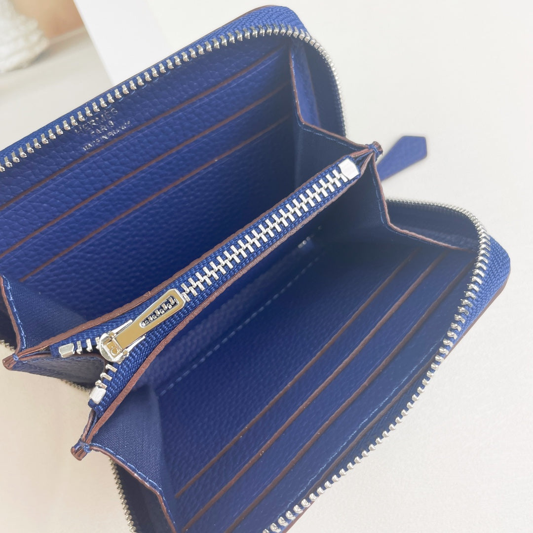 HM SILK'IN HOLED SHORT WALLET 11.5 COBALT GRAINED CALFSKIN