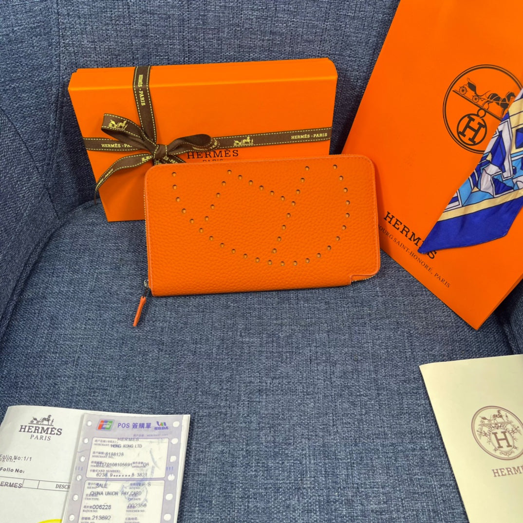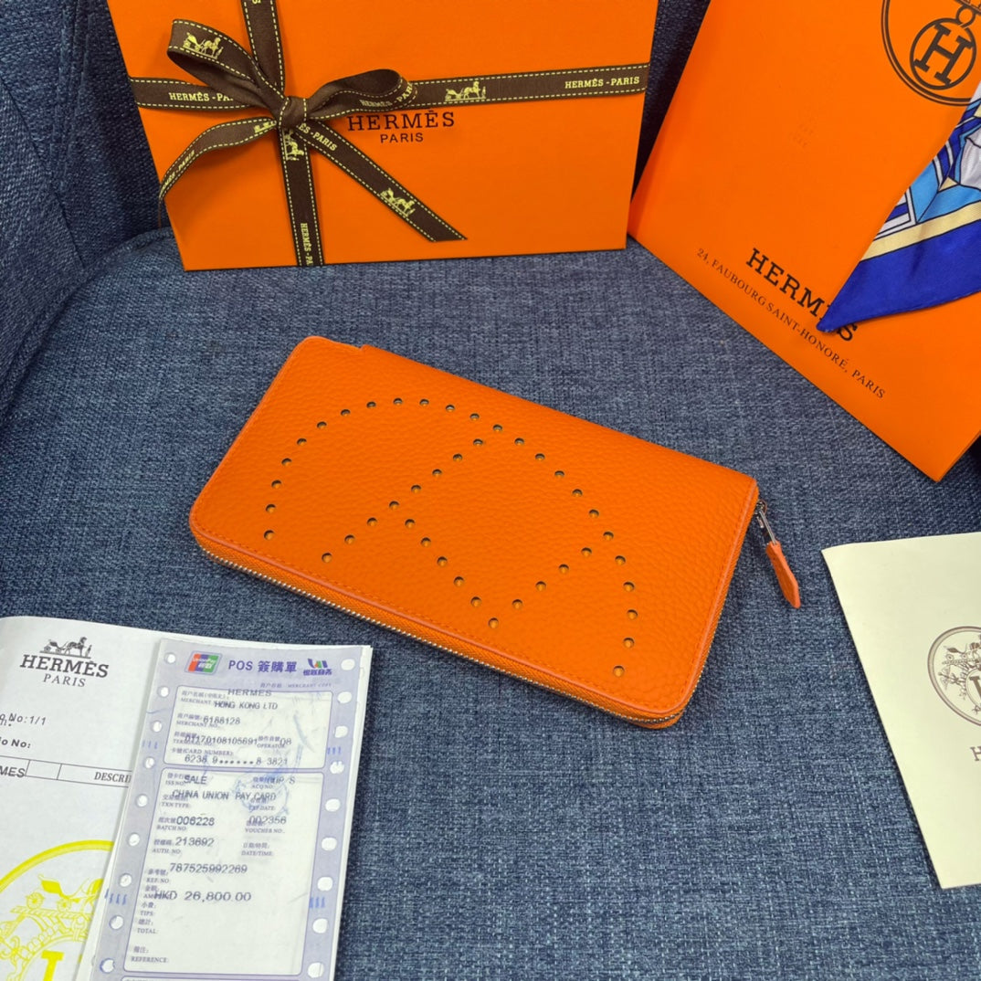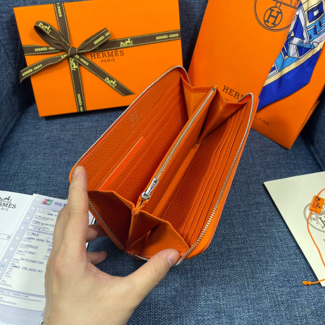 HM SILK'IN HOLED WALLET 19 ORANGE GRAINED CALFSKIN