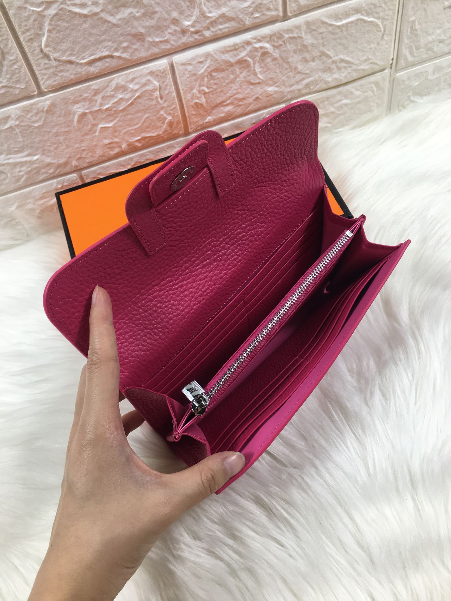 HM SNAP LOCK WALLET 19.5 DEEP PINK GRAINED CALFSKIN