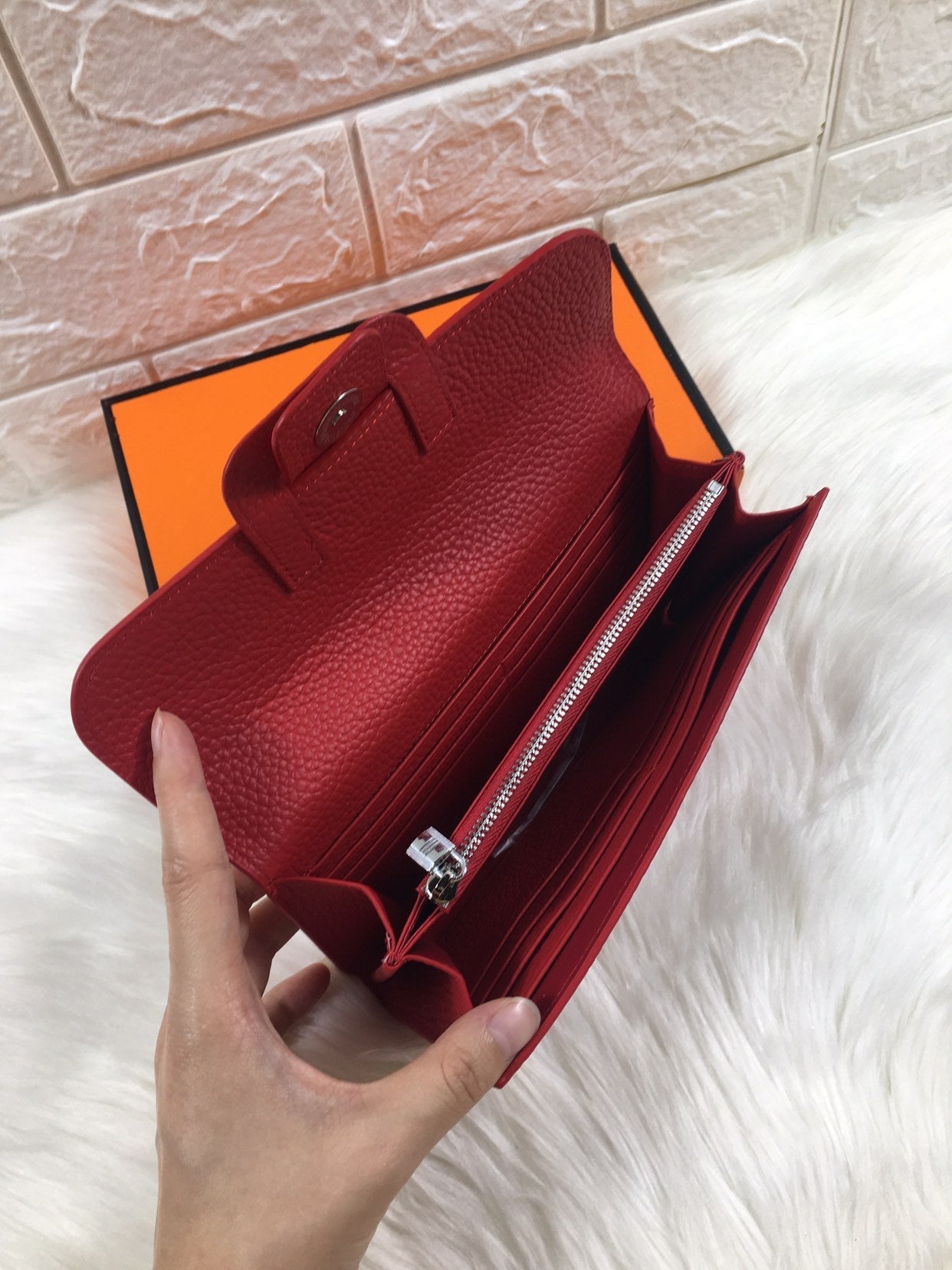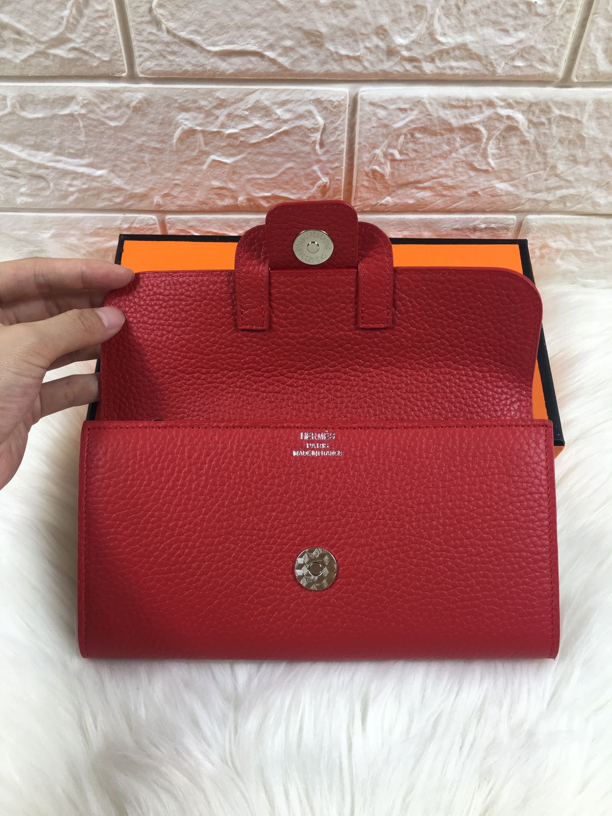 HM SNAP LOCK WALLET 19.5 RED GRAINED CALFSKIN