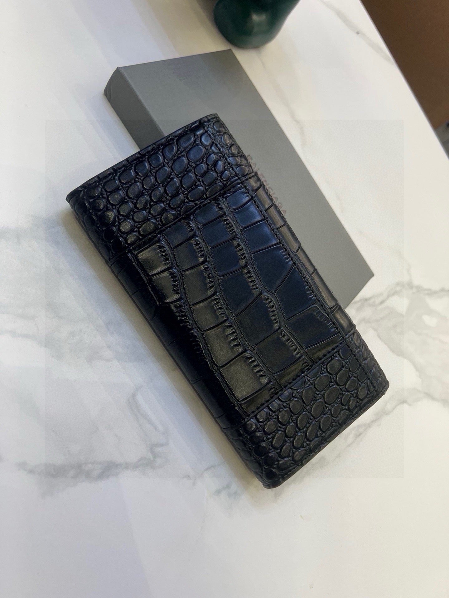 WALLET 15 IN BLACK CROCODILE EMBOSSED CALFSKIN