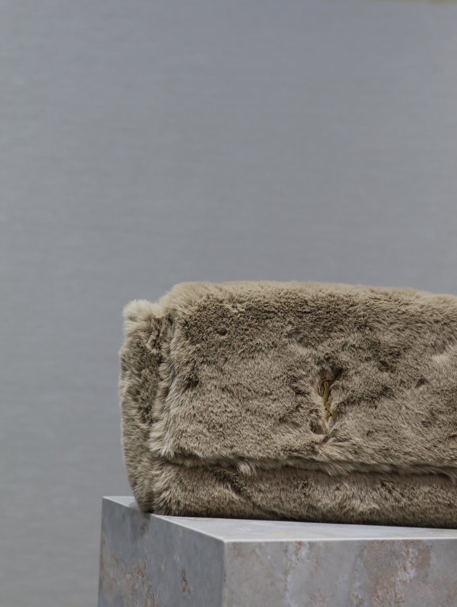 KATE FLAP BAG 28 IN ECRU BEIGE RABBIT FUR GOLD CHAIN