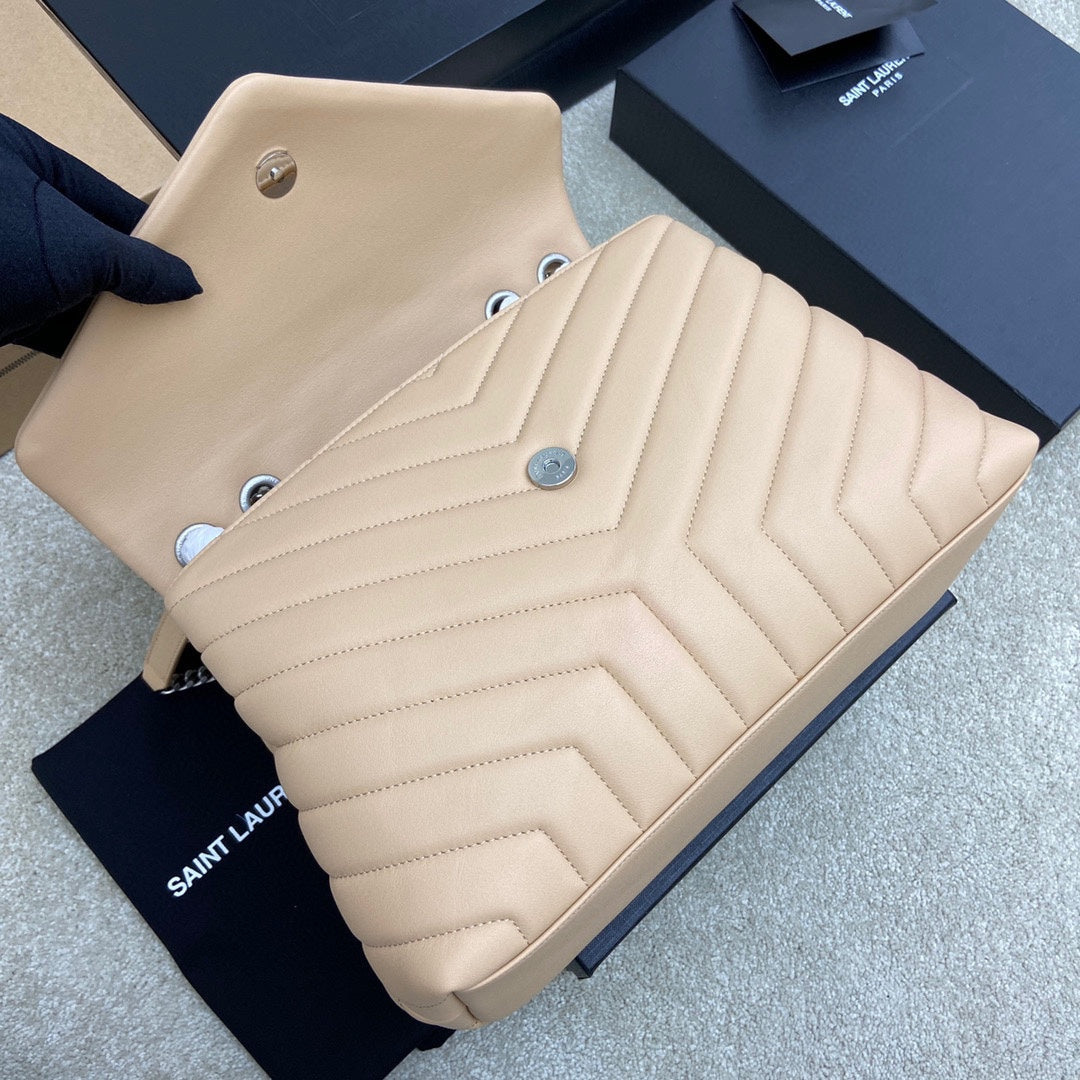 LOULOU MEDIUM 32 CREAM QUILTED LEATHER SILVER HARDWARE