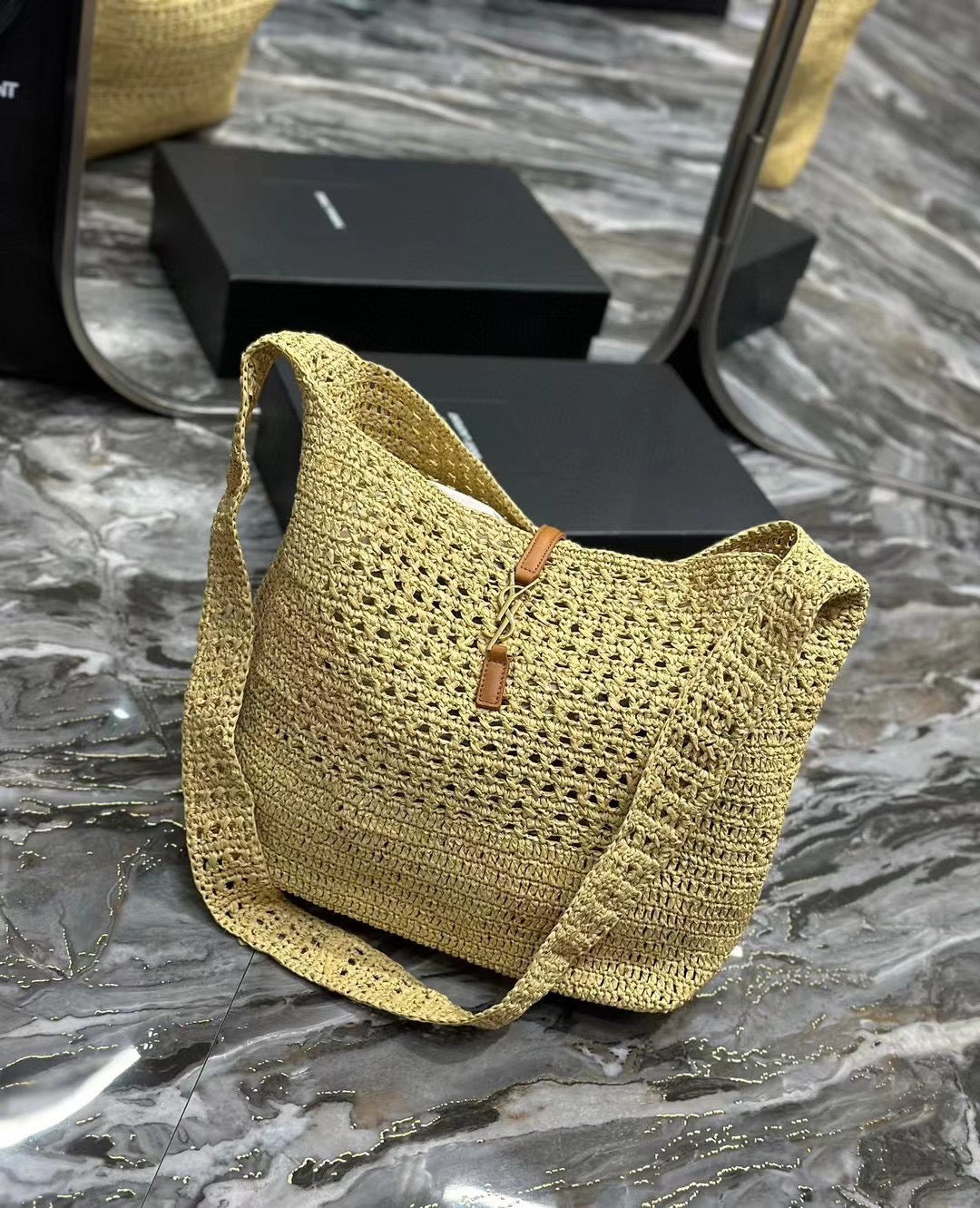 YSL HOBO BAG 30CM BEIGE RAFFIA