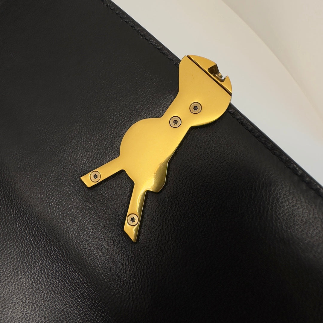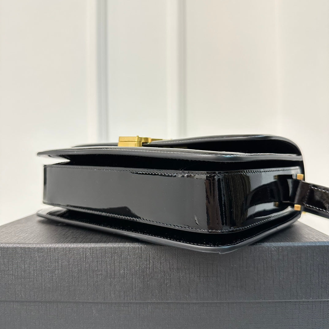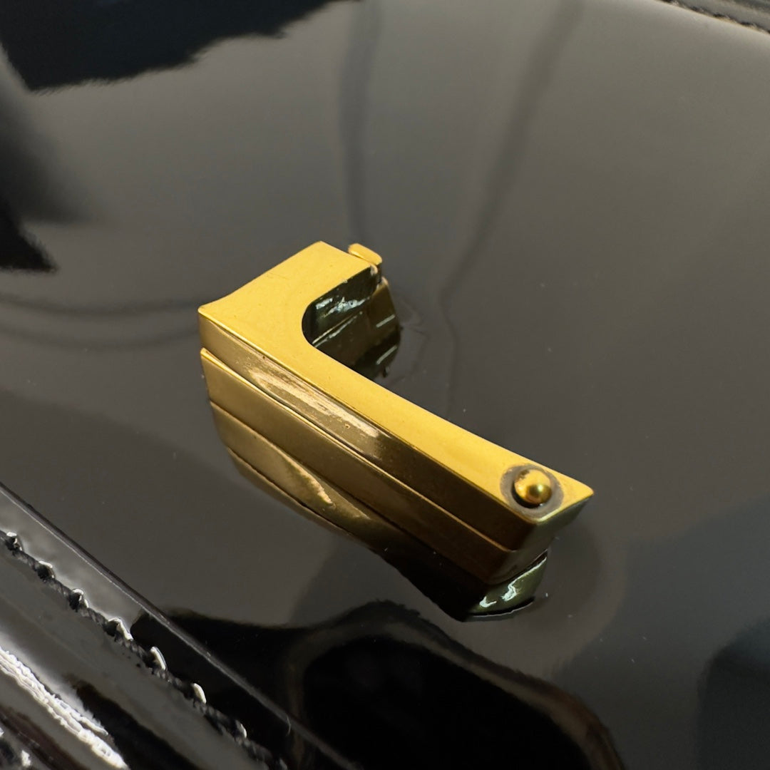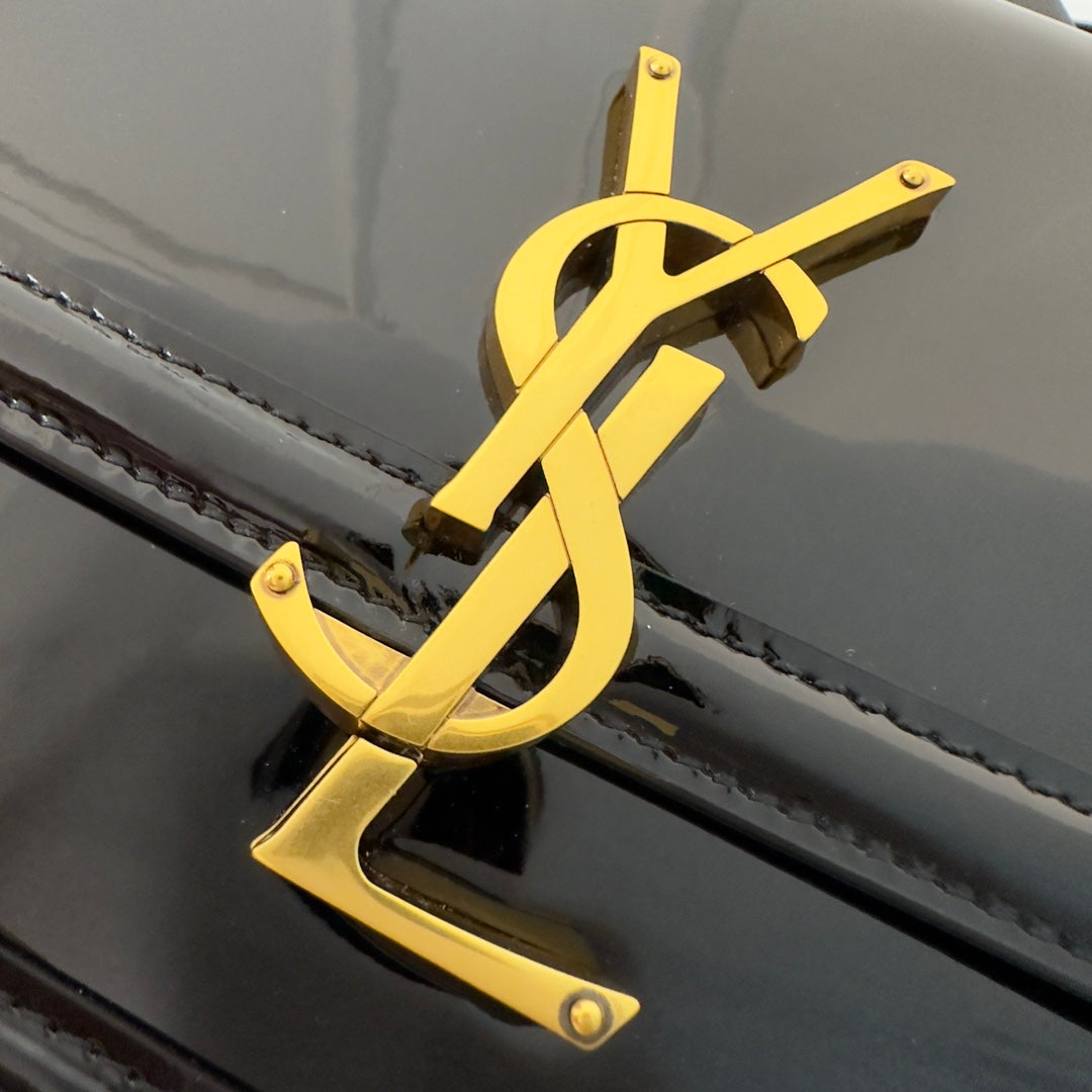 YSL Solferino Small Satchel Bag Black Gold Patent Leather 339430